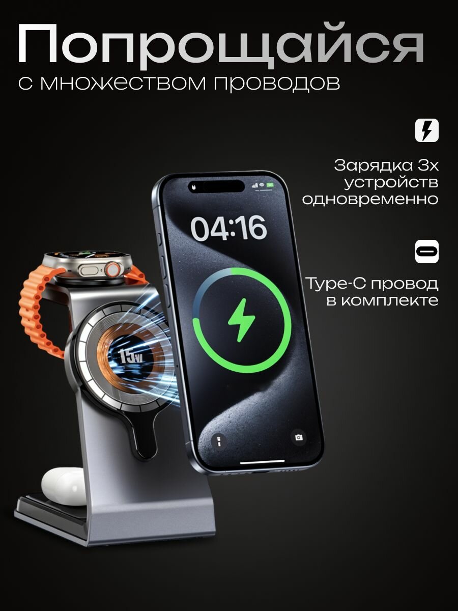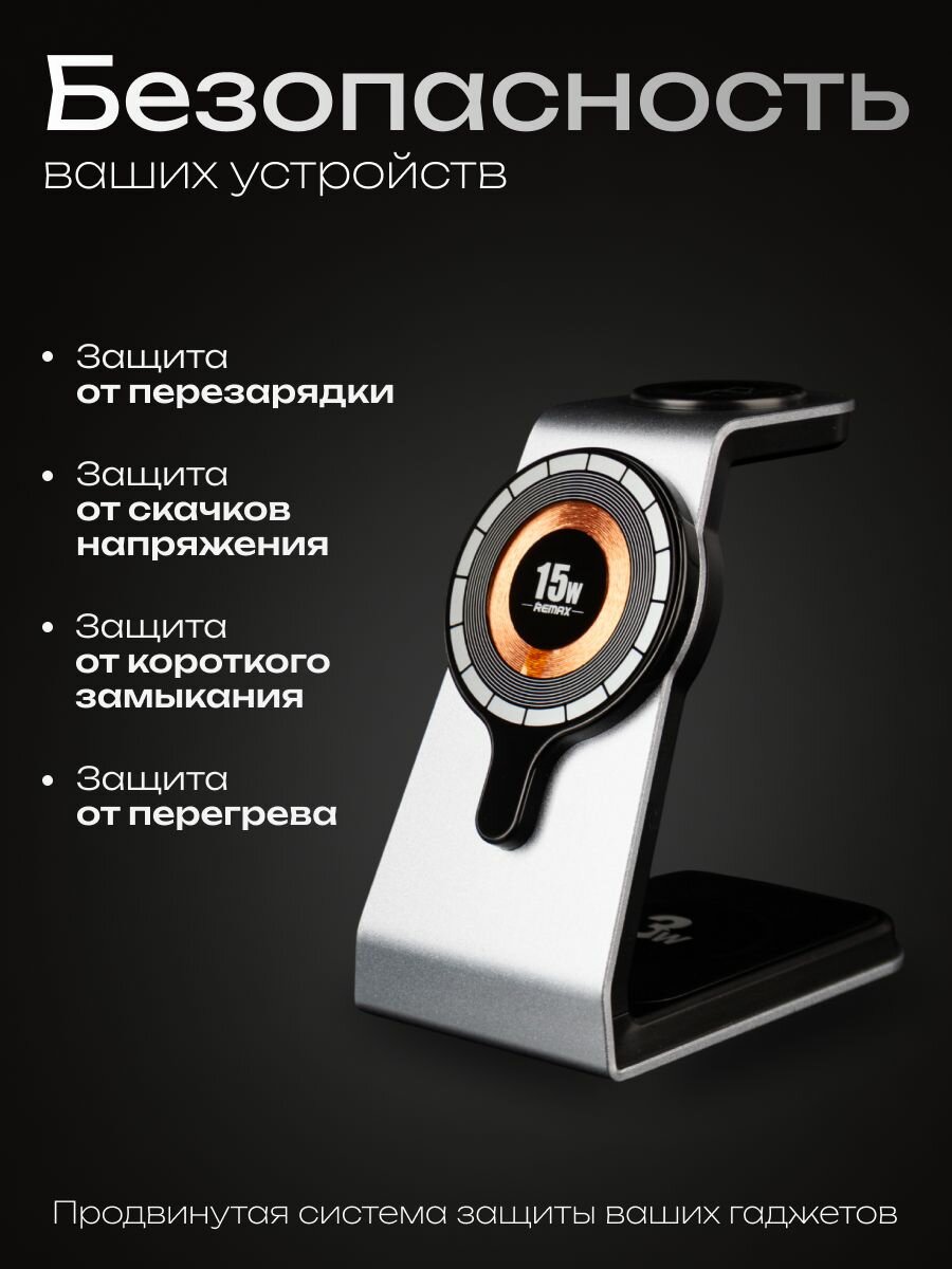 Беспроводная зарядка для iphone REMAX / док станция 3 в 1 с MagSafe / зарядная станция для айфона информация: