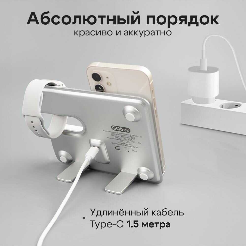 Беспроводная зарядка для iPhone / Зapядка / Док станция 3в1 для iPhone / Быстрая зарядка / Белый информация:
