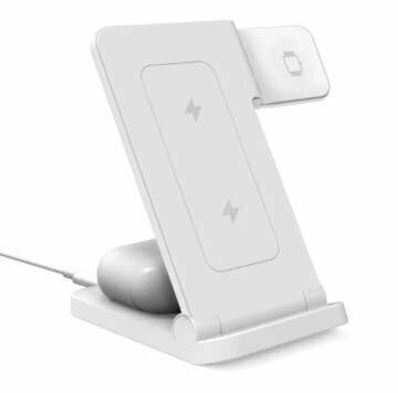 Беспроводная зарядная станция 3в1, для телефонов, часов и наушников, 15Вт Белая. информация: