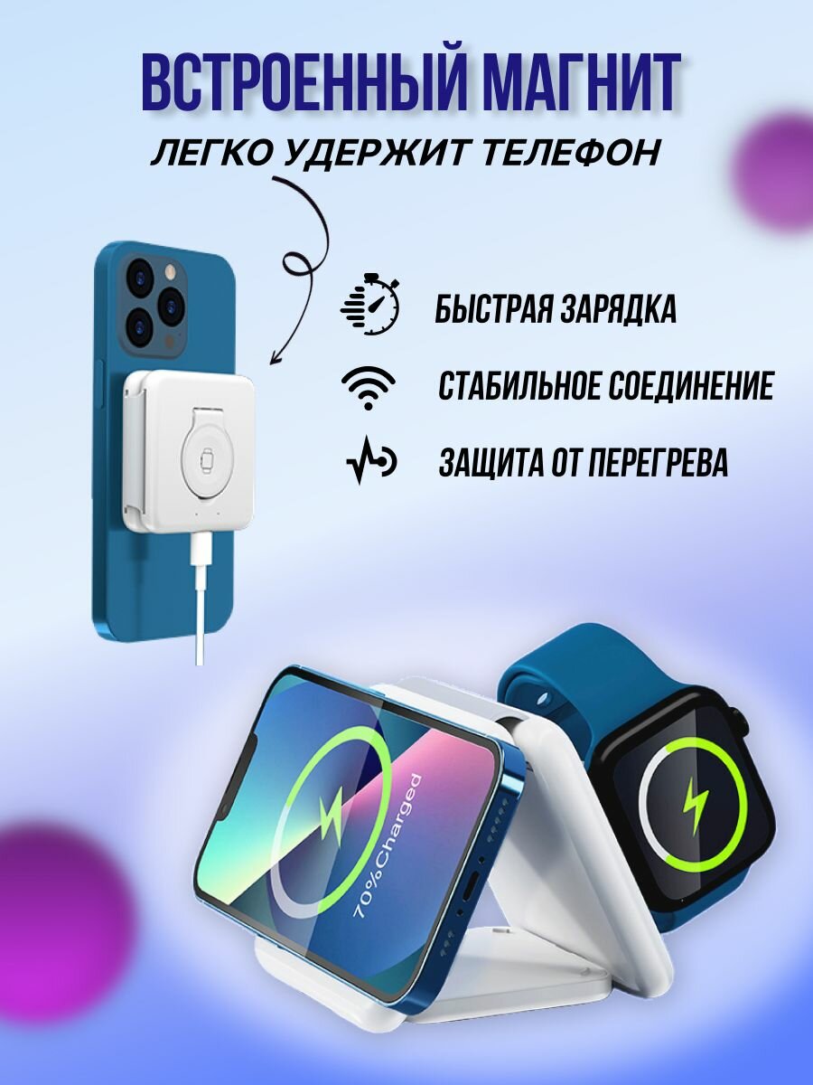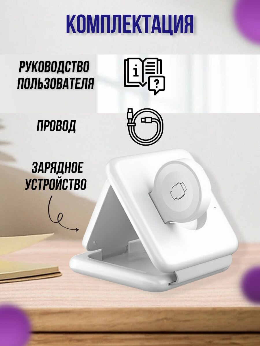 Беспроводное зарядное устройство Holy Way 3-in-1, для телефона, USB Type-C, белое информация: