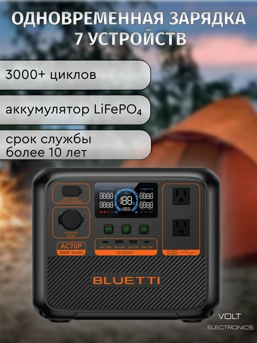 Отзывы на Портативная станция Bluetti "AC70P", черно-серая, LiFePo4, 864Вт/ч, 2000Вт