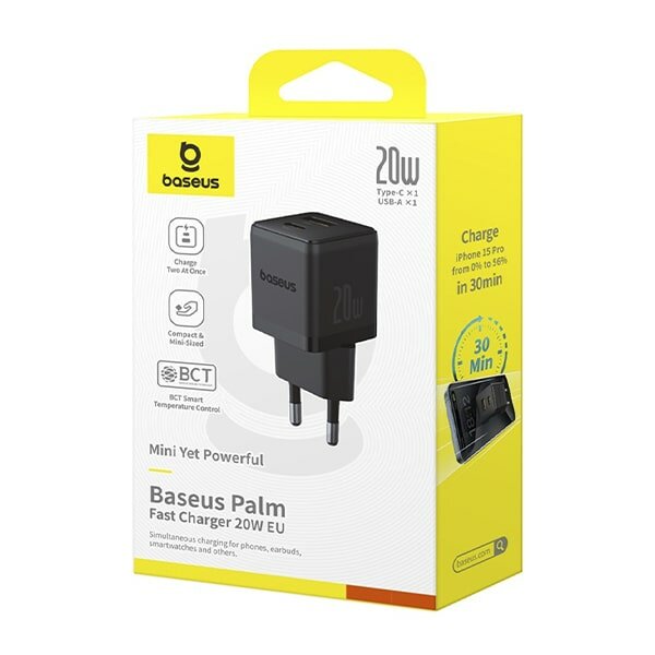 10 цен на Сетевое зарядное устройство Baseus Palm C+U 20W EU Cluster Black (P10111608113-00)