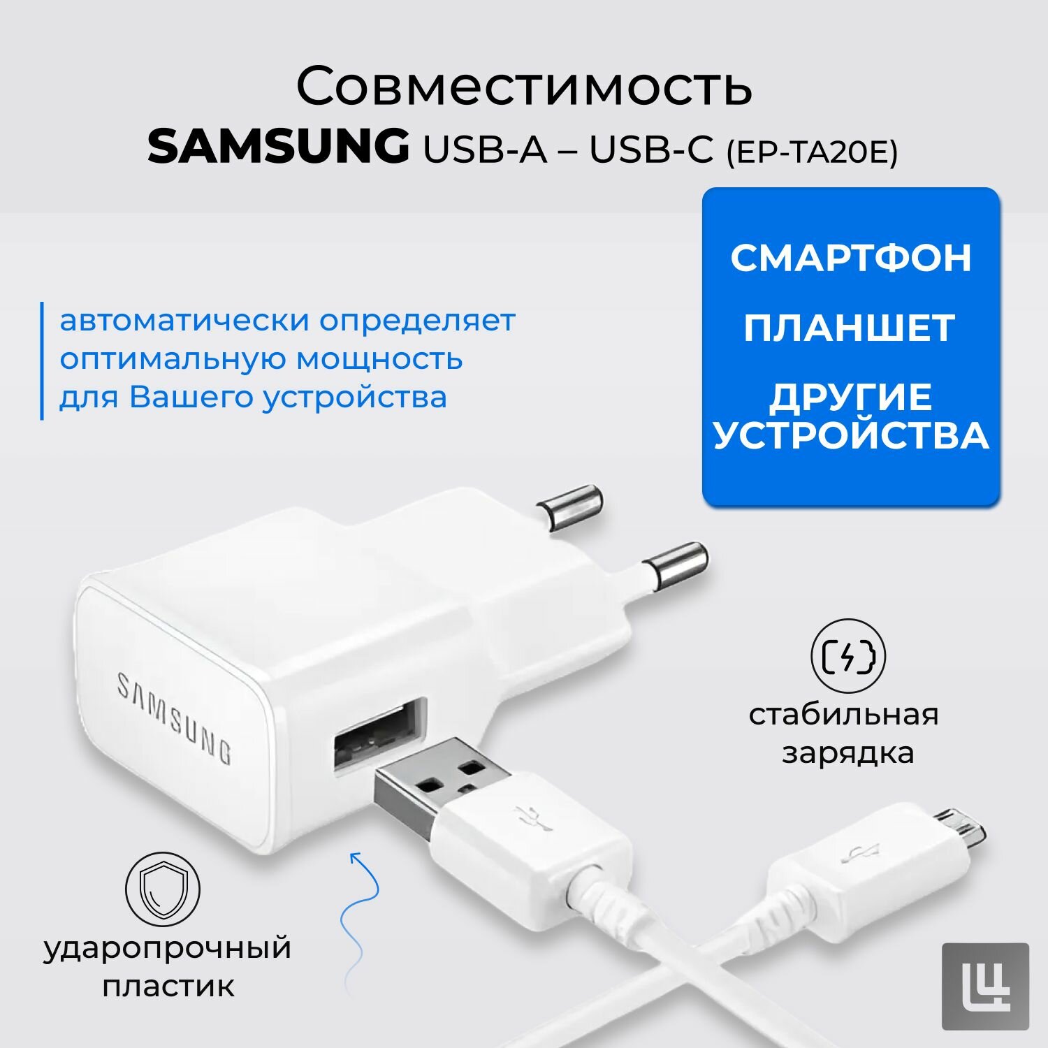 10 цен на Сетевое зарядное устройство с кабелем Samsung USB-A To USB-C, 15В, (EP-TA20E) Быстрая зарядка, белый
