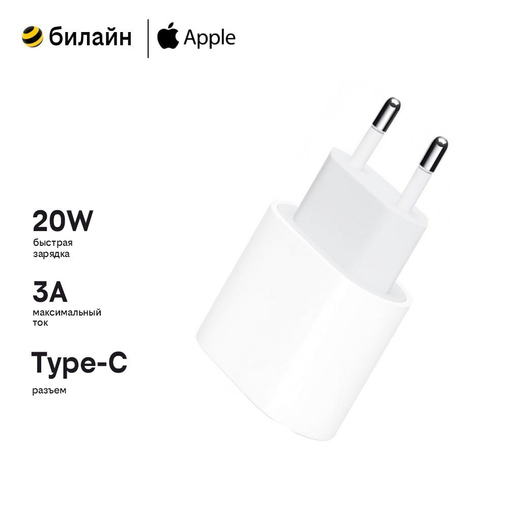 Зарядное устройство Apple MUVV3ZM/A USB-C 20 W, 1 разъем, белый информация: