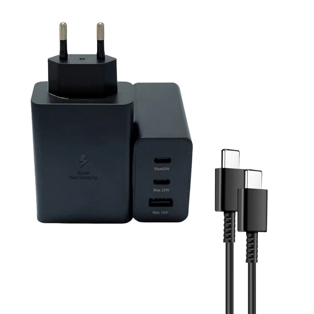10 цен на Зарядное устройство для Samsung/Android/iOS/Адаптер 65W+ кабель Type-C - Type-C/черный