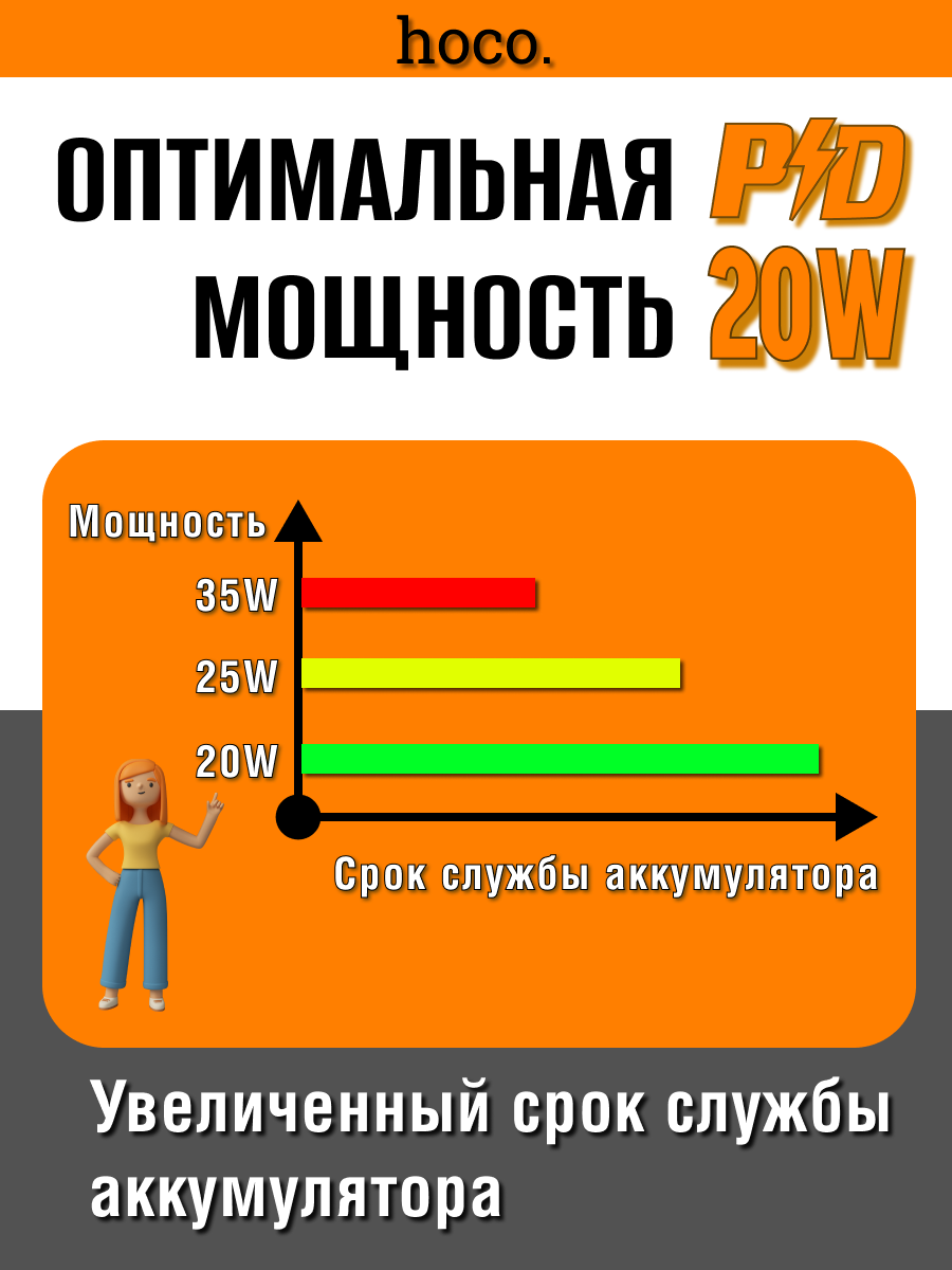 Отзывы на Зарядное устройство для iPhone / Hoco C76A Plus / мощность PD20W 3А, в комплекте с кабелем Lightning - Type-C для Apple