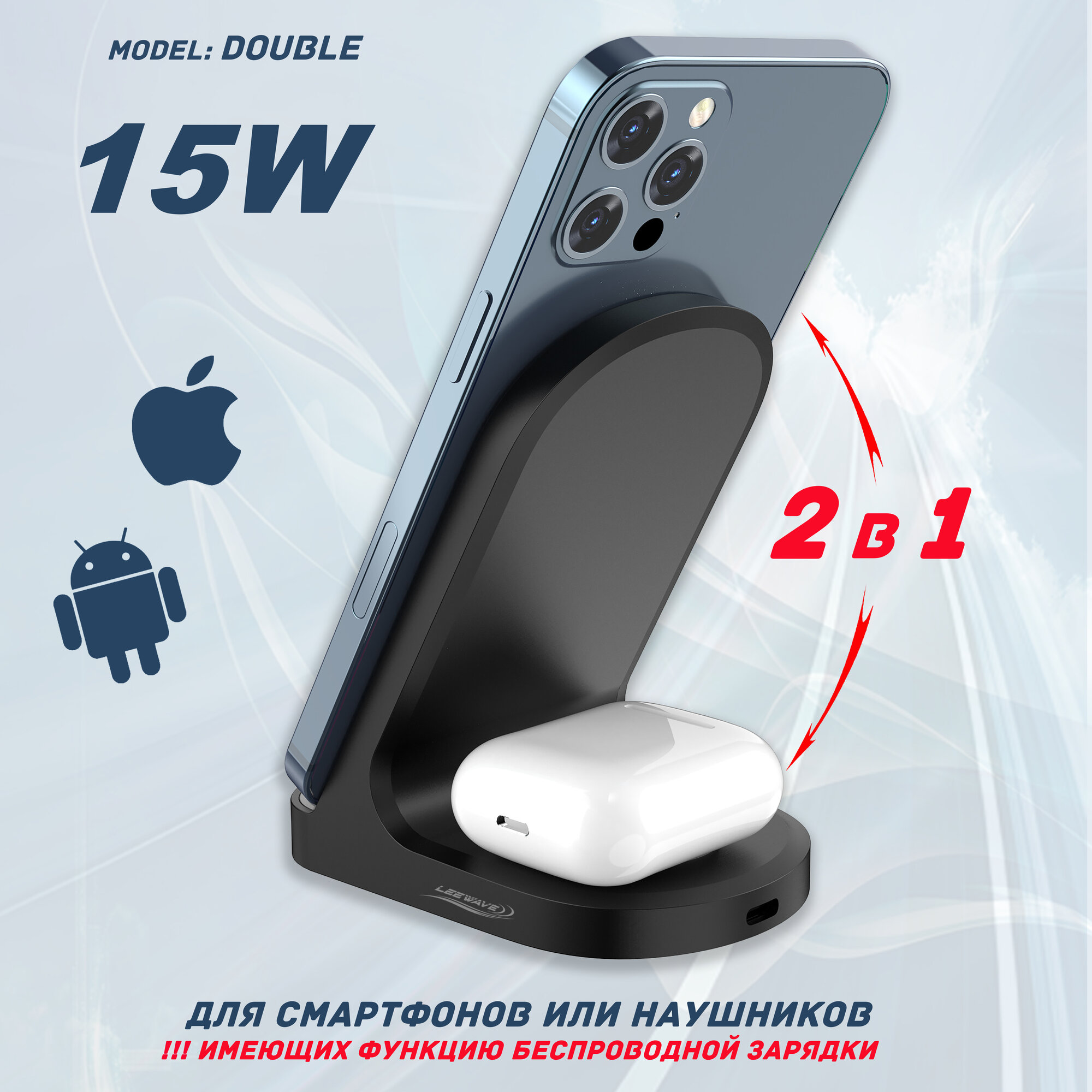 10 цен на Беспроводная зарядка - подставка 2 в 1 для Android и iPhone, для смартфона и наушников. Черная