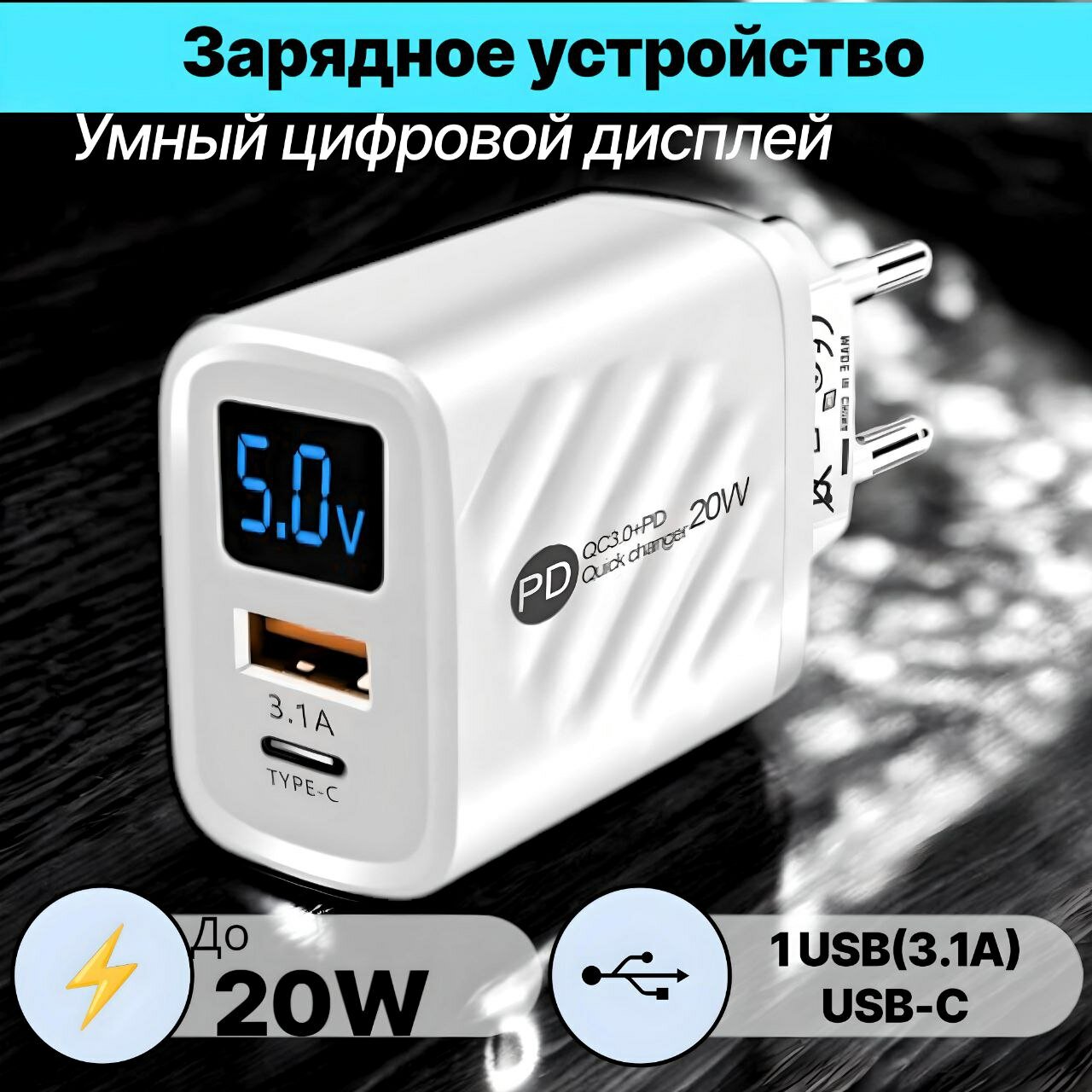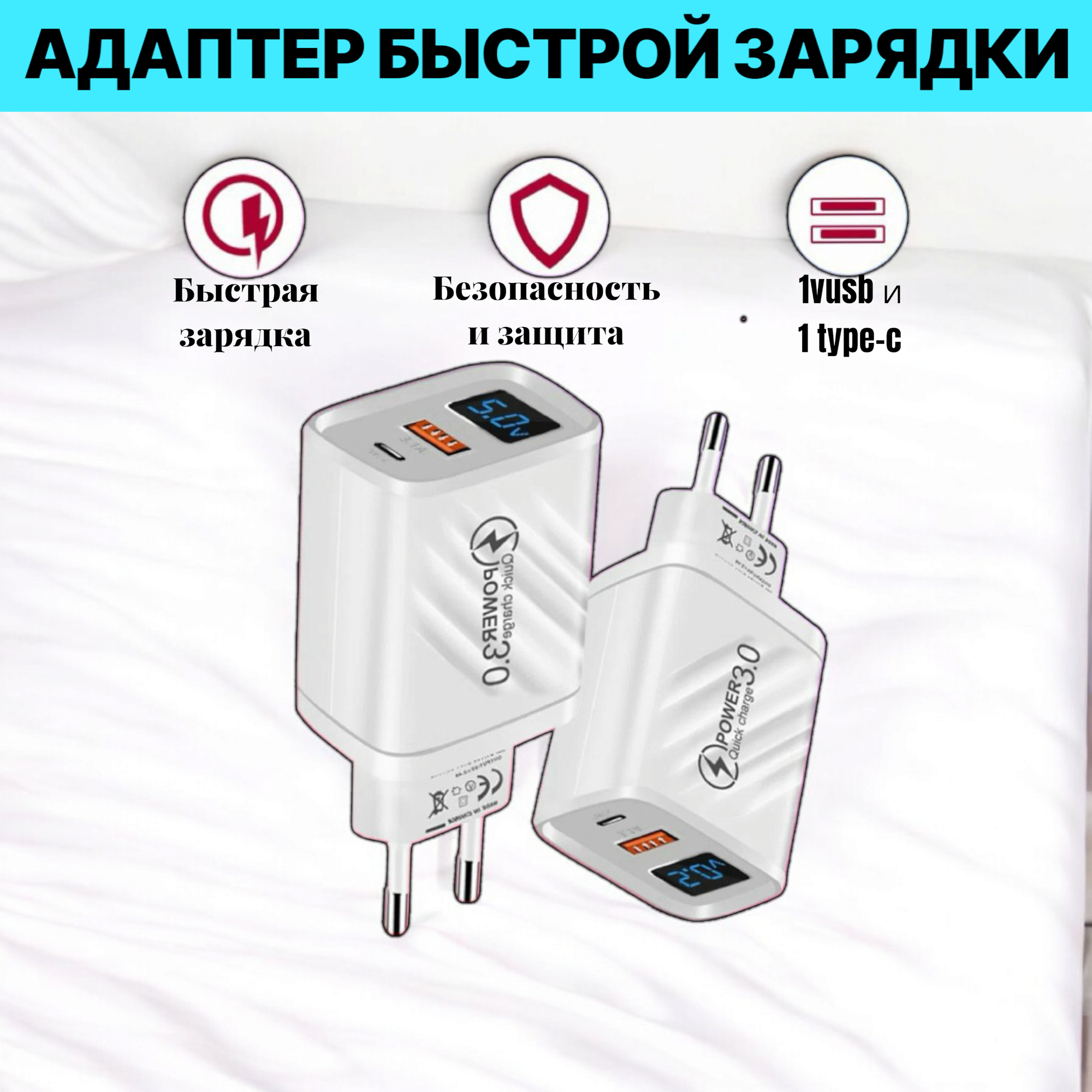 Отзывы на Зарядное устройство для телефонов и планшетов с двумя портами USB и Type-C, цвет белый
