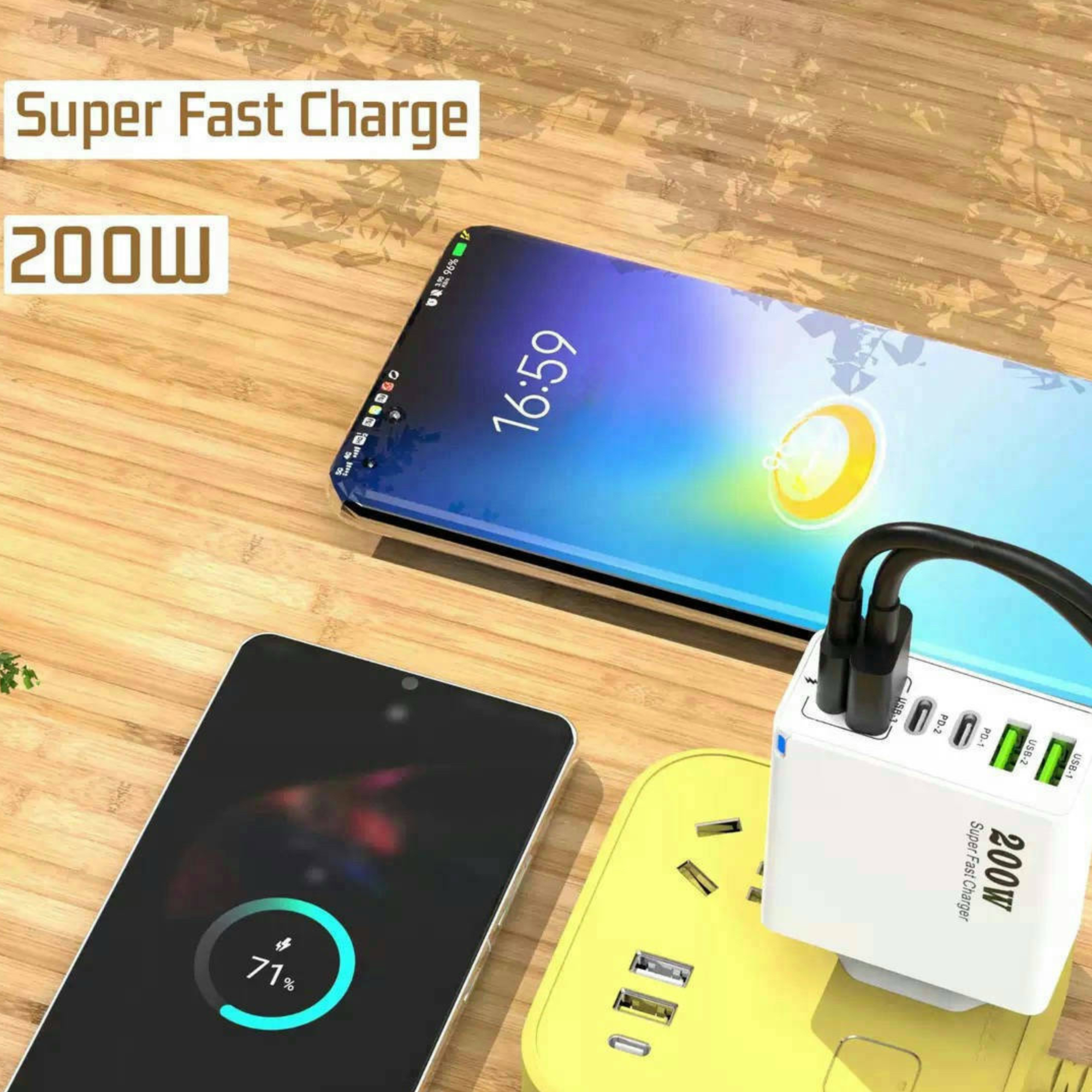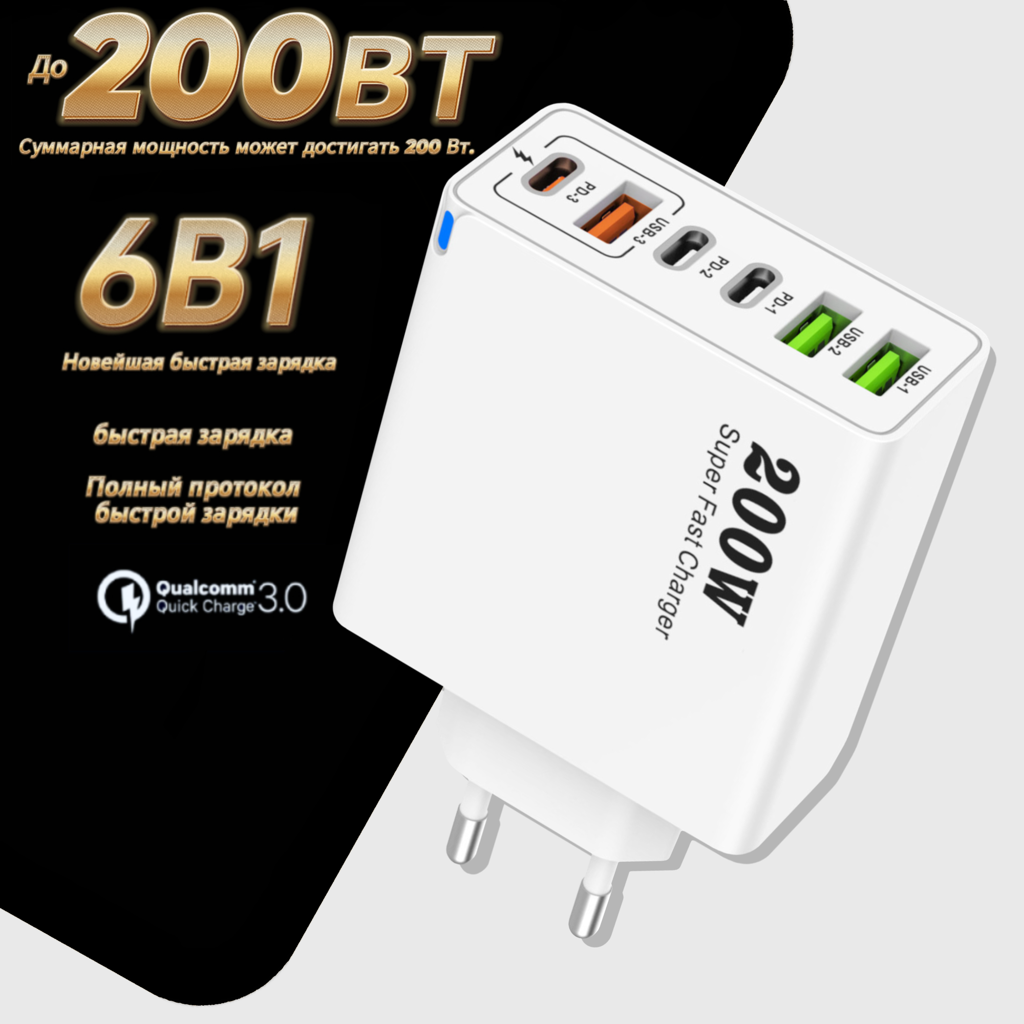 Отзывы на Зарядное устройство (адаптер) для зарядки телефона, планшета. 3 USB порта и 3 Type-C разъема. 200W 5V / цвет белый