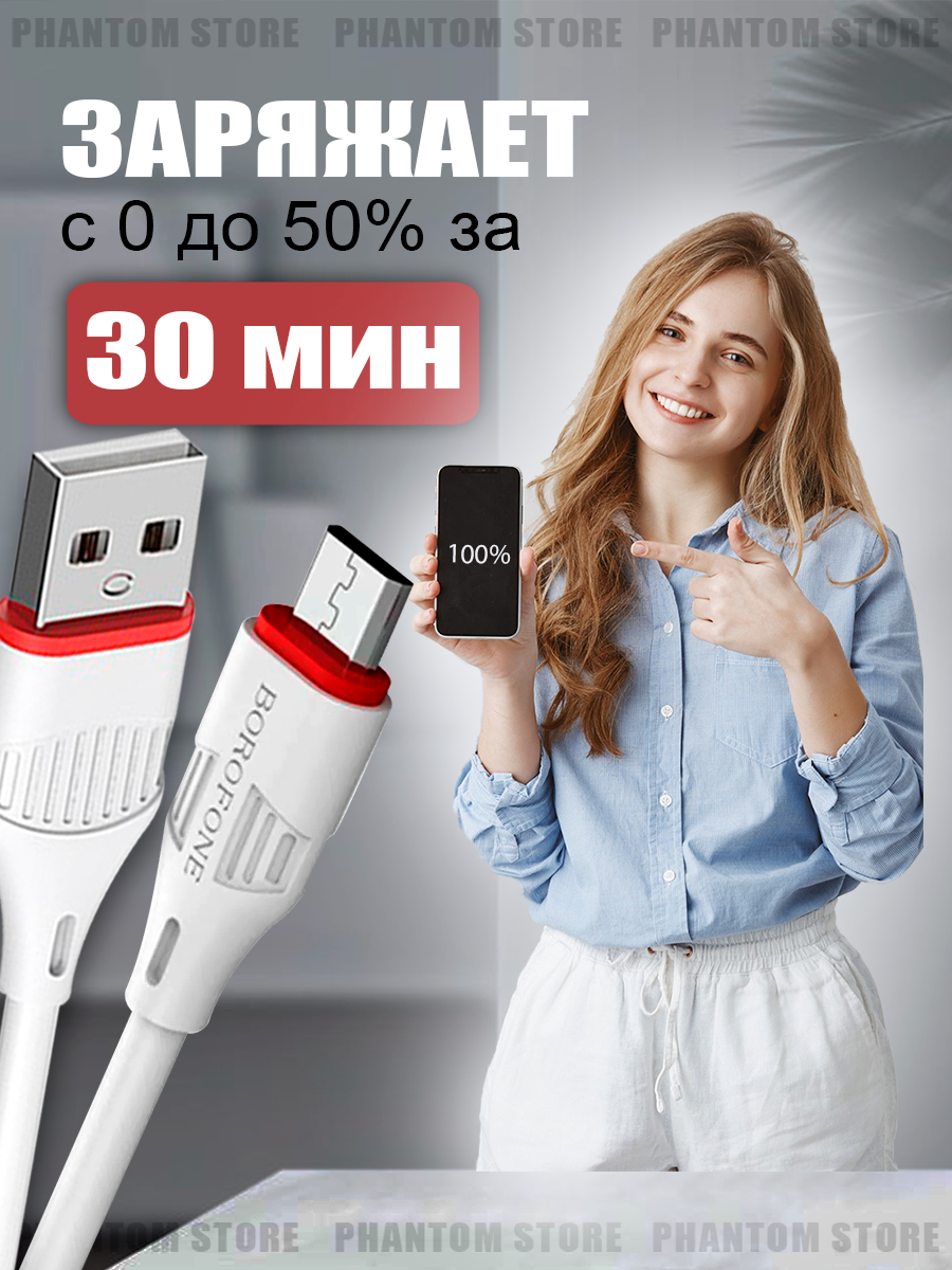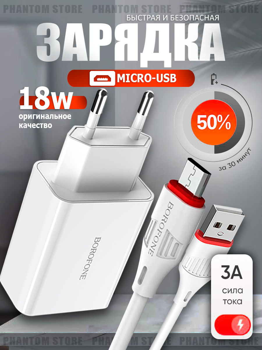 Зарядное устройство для телефона адаптер 18W - 18 вт ( Быстрая зарядка Micro-usb ) за 30 минут 50% информация: