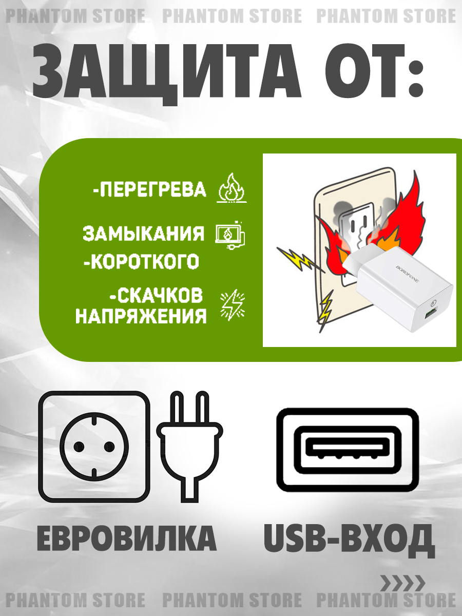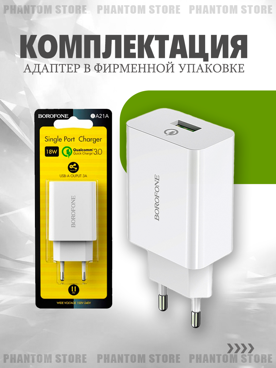 Зарядное устройство для телефона адаптер 18W - 18 вт ( Быстрая зарядка без кабеля) за 30 минут 50% информация: