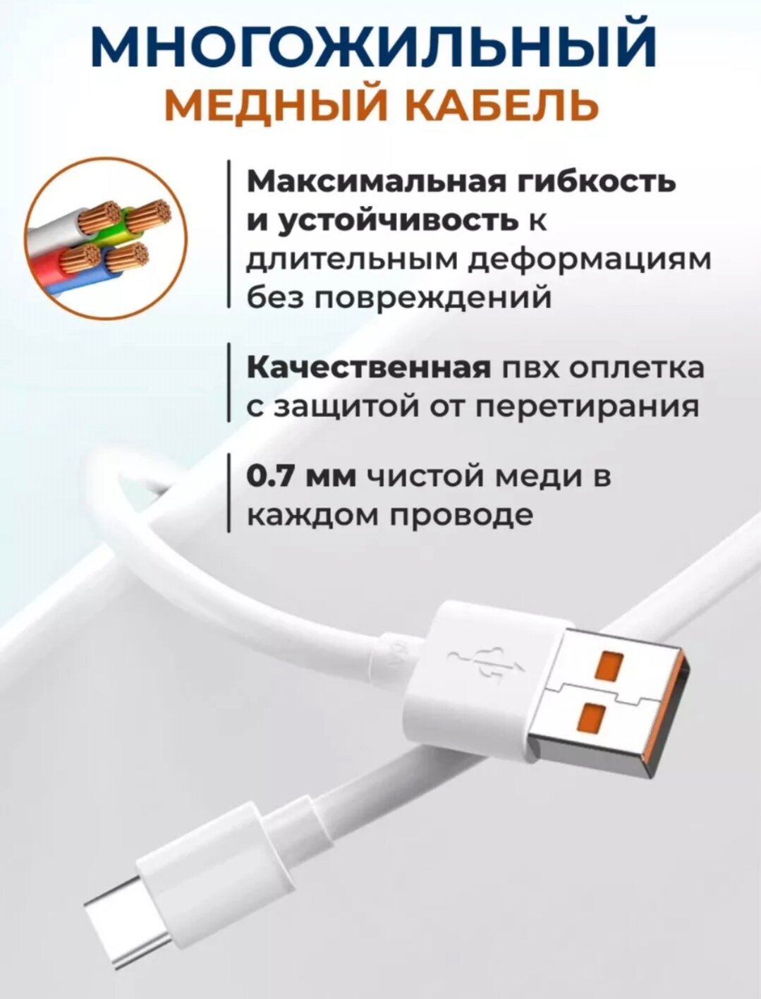 Зарядное устройство, 67Вт, Qualcomm QC3.0, USB-C, с кабелем, 5.5А, белое Оригинал информация: