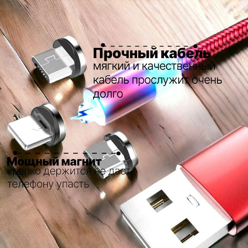 Отзывы на Магнитный зарядный кабель AOCV USB Type-C, Lightning, MicroUSB, 1 м, красный