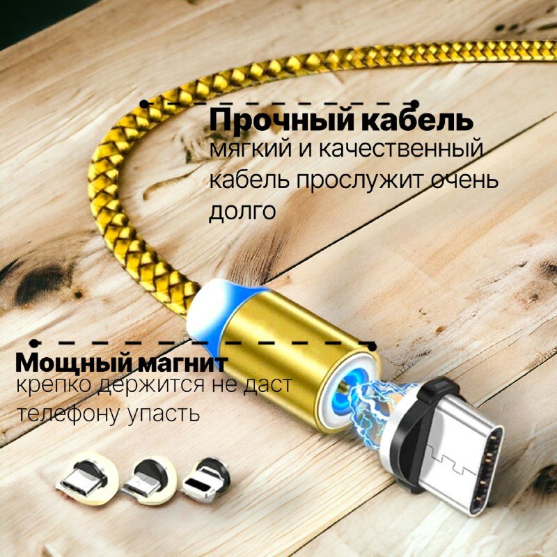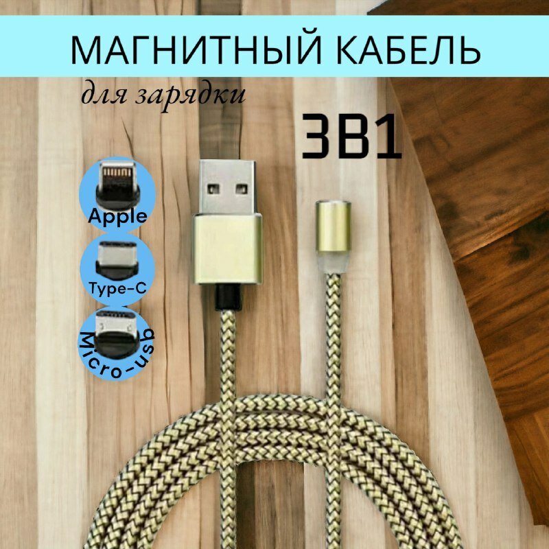 Отзывы на Магнитный зарядный кабель AOCV USB Type-C, Lightning, MicroUSB, 1 м, золотой
