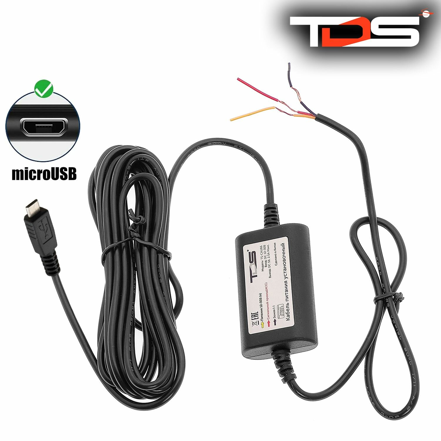 10 цен на Скрытая проводка для видеорегистраторов, установочный кабель питания microUSB TDS TS-CAU66 2.5 метра