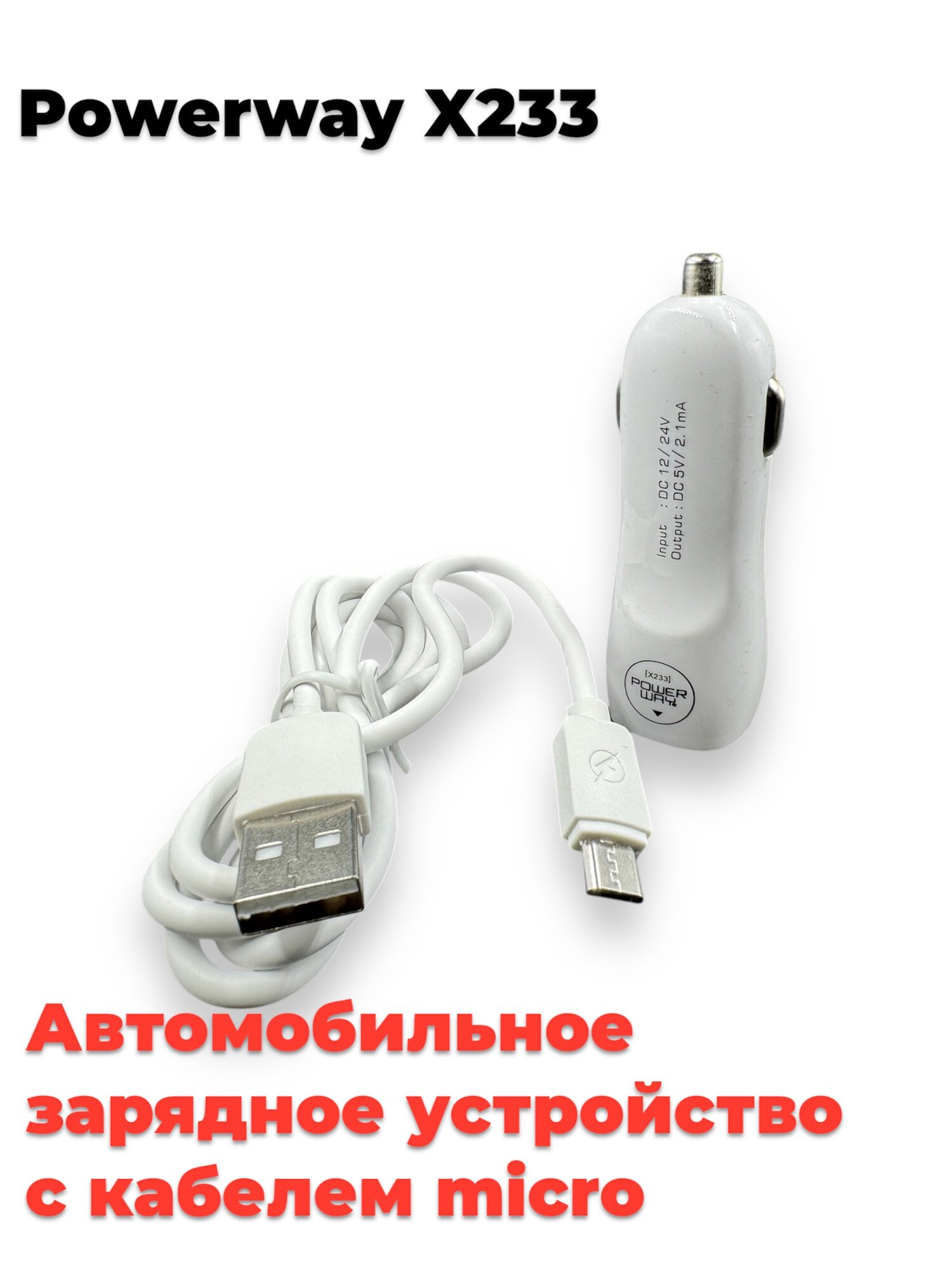 Автомобильное зарядное устройство "Powerway X233", с кабелем Micro информация: