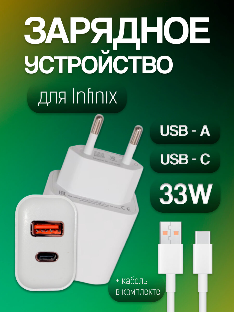 Отзывы на Сетевое зарядное устройство для Infinix (XC02-1S) 33W с кабелем USB -Type-C 5A