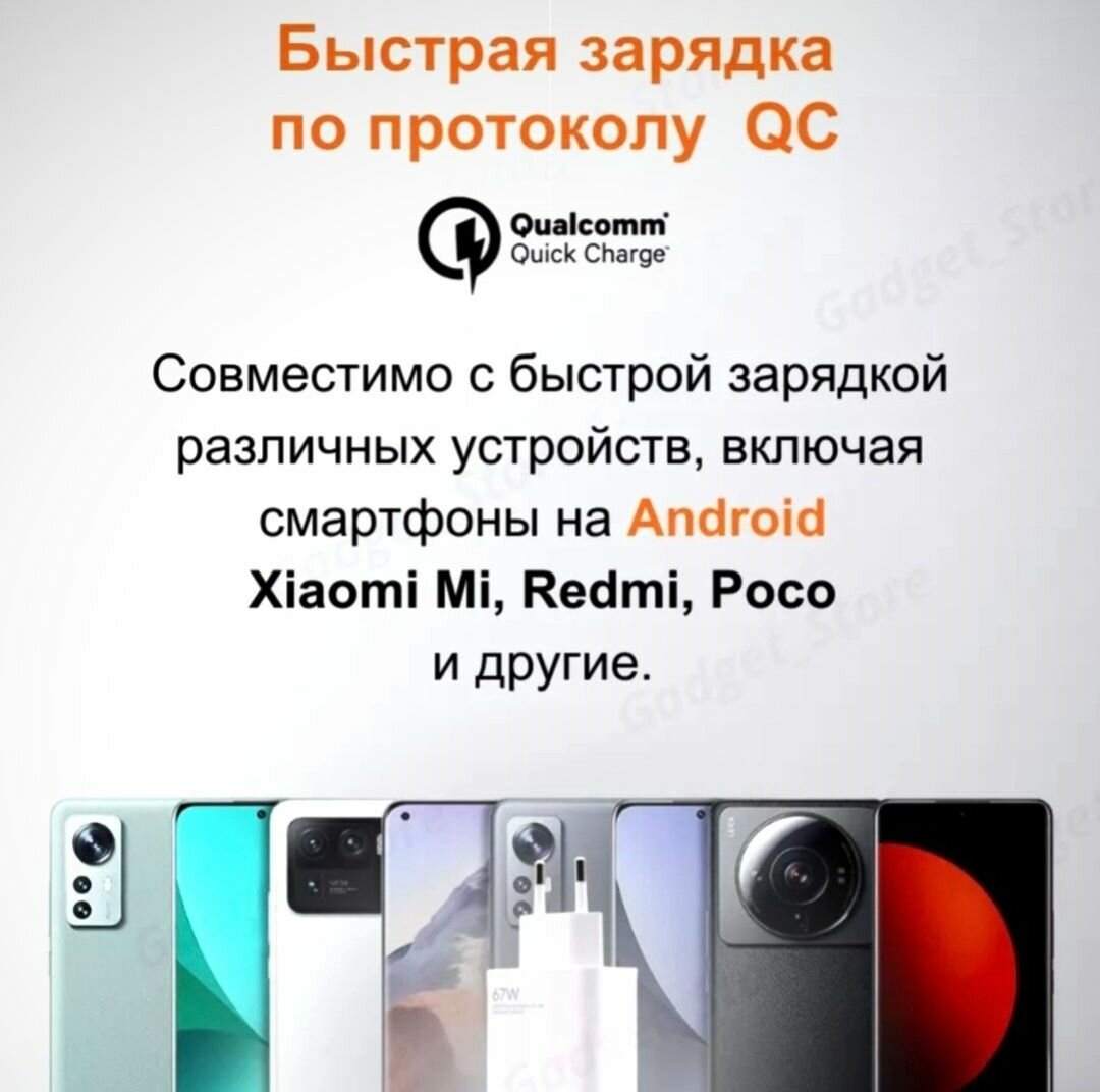 Зарядное устройство для телефонов Xiaomi/Oppo/Redmi/Samsung с быстрой зарядкой 33 Вт информация: