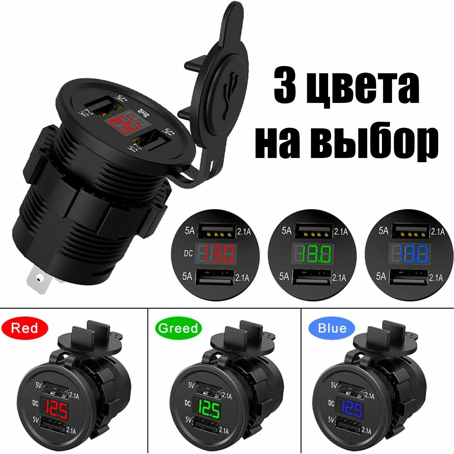 10 цен на Розетка питания на 2 USB гнезда12-24В круглая TDS TS-CAU49 Синяя