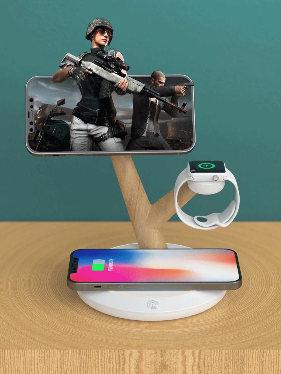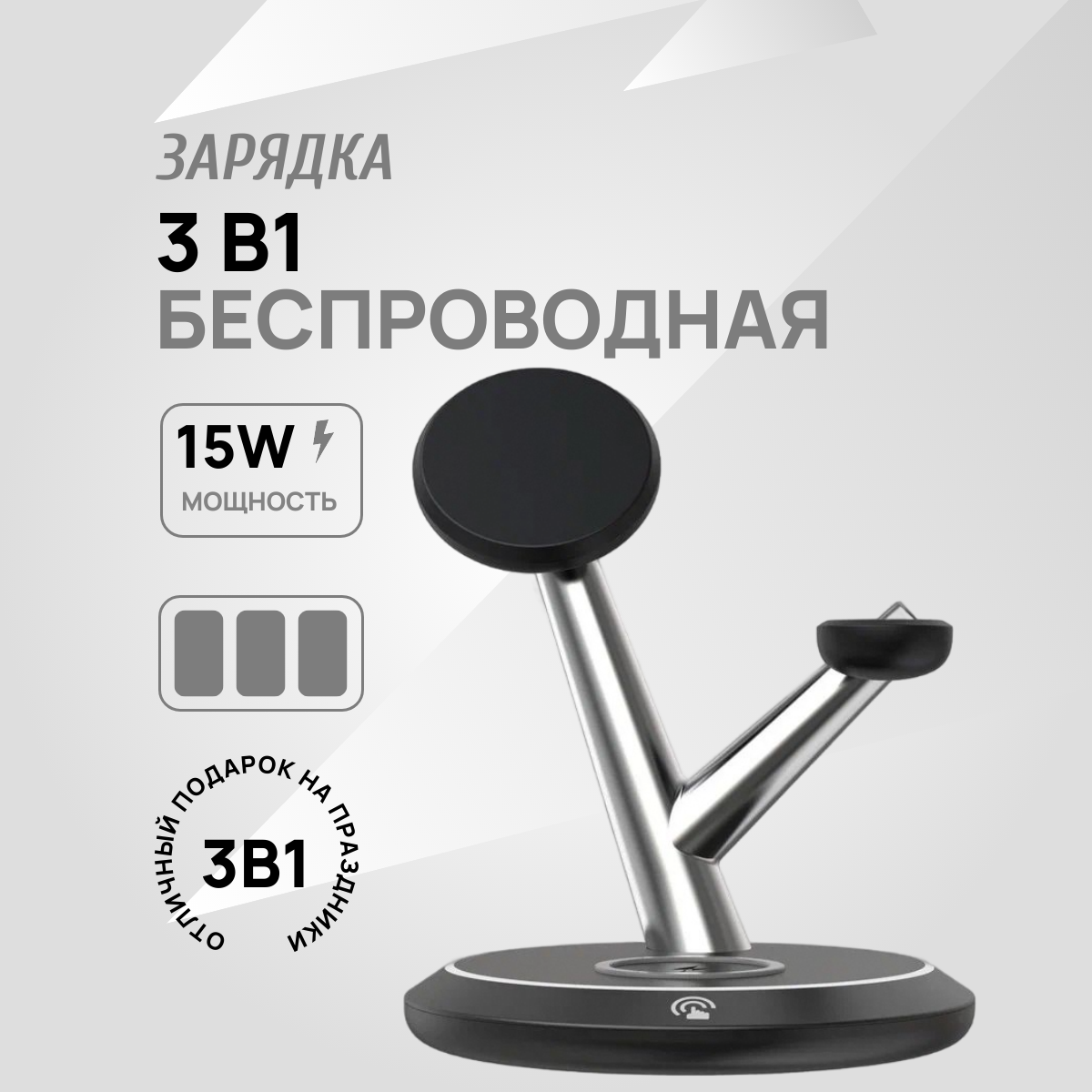 Беспроводная зарядка 3 в 1 для iPhone и Android Qi, док станция TH02 черно-серебристая magsafe информация:
