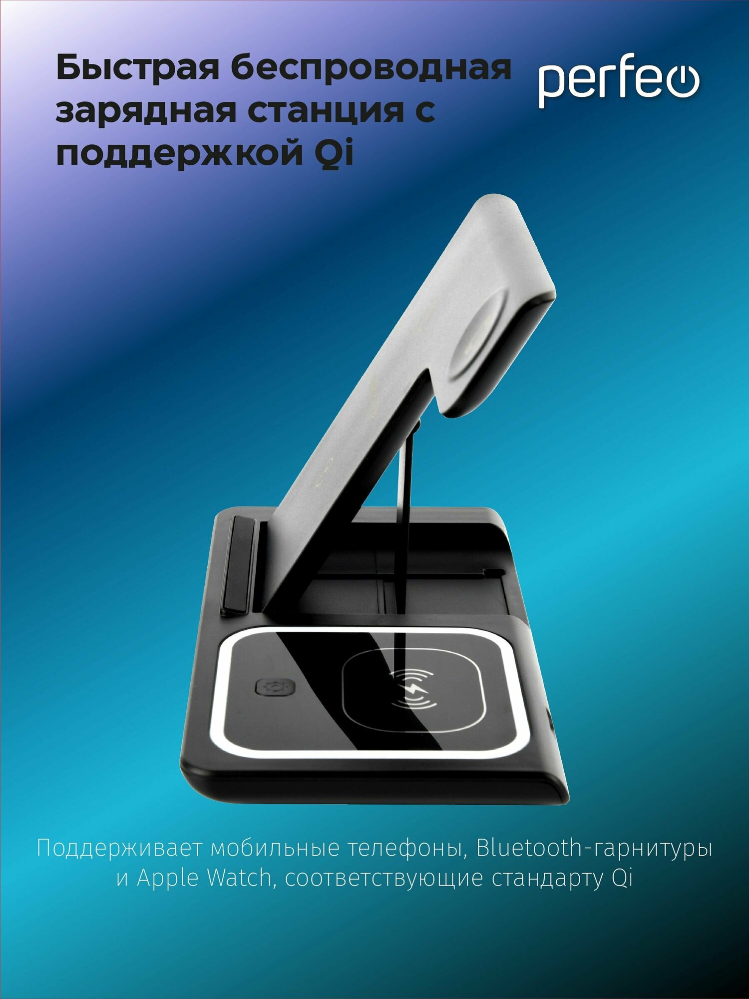 10 цен на Беспроводное зарядное устройство PERFEO 3 в 1, LED, Qi (PF_D1156)