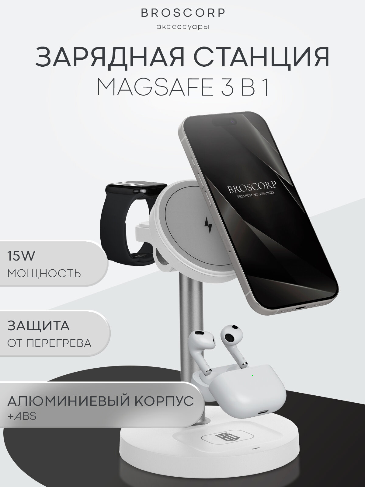 10 цен на Беспроводная зарядка iPhone MagSafe 3 в 1, бренд Broscorp, белая