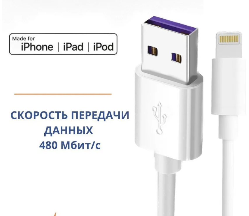 Отзывы на Кабель USB Lightning 2 м, 5 А , быстрый заряд, для смартфона, белый, прочный