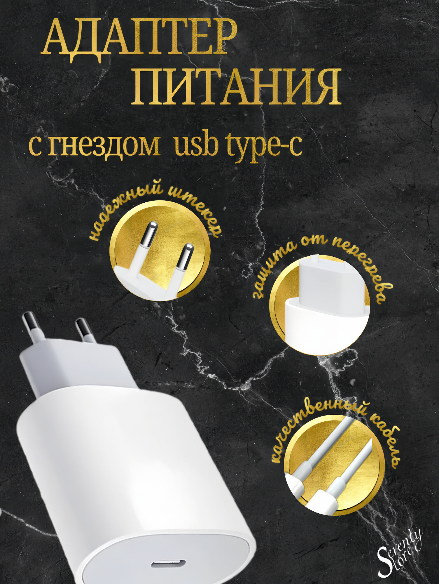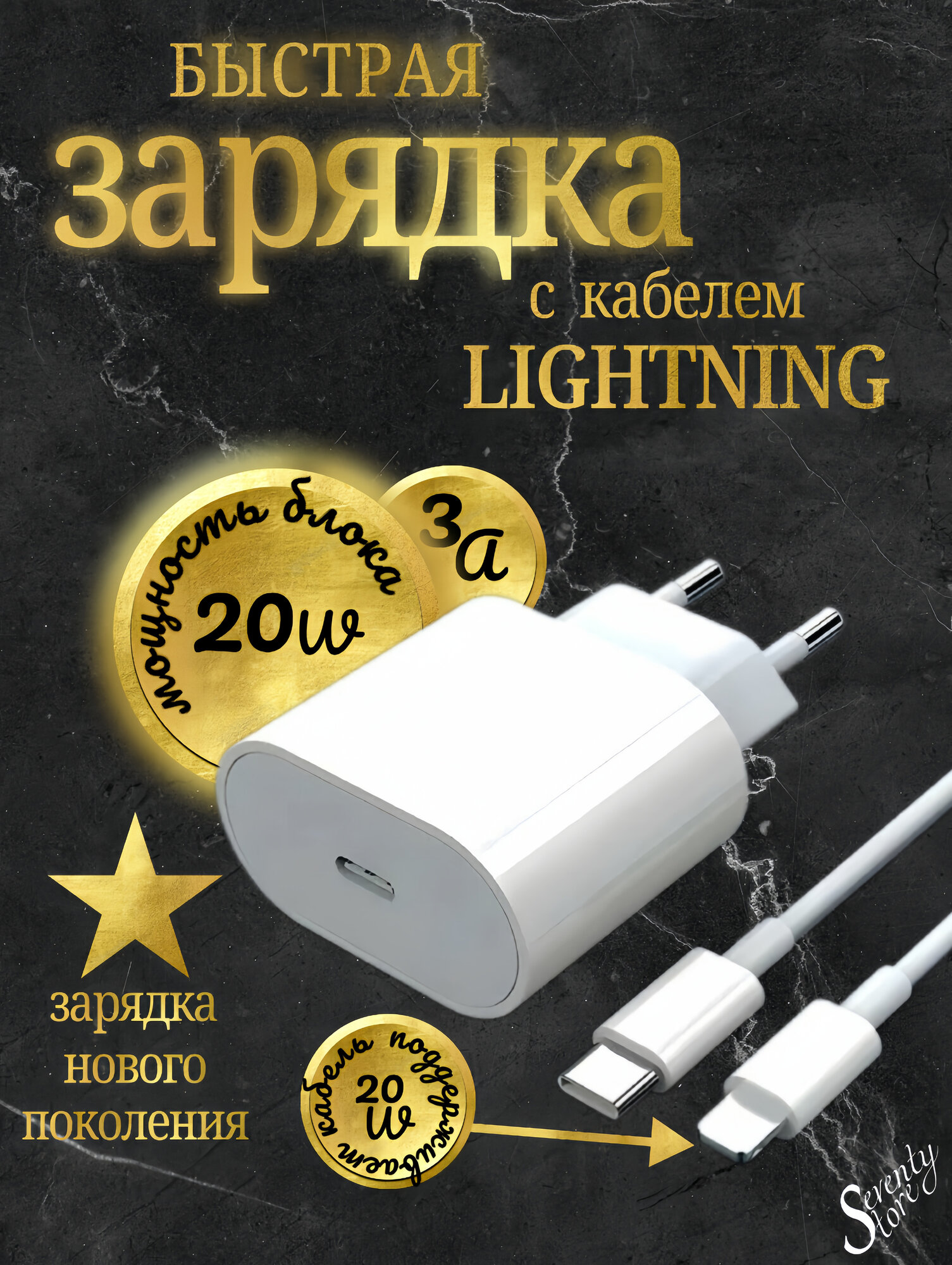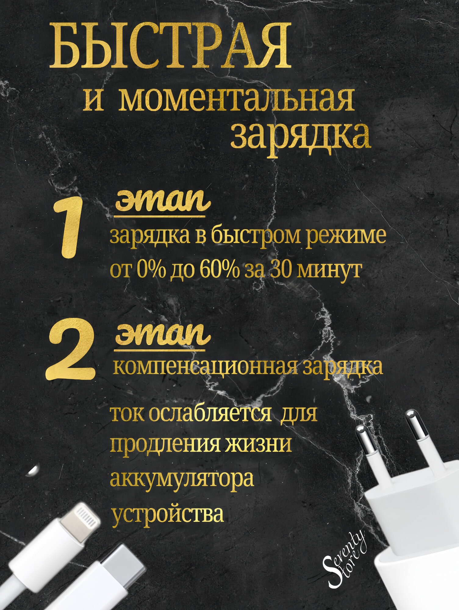 Комплект быстрой зарядки для iPhone Type-C блок 20W и кабель lightning / зарядка на айфон / зарядное устройство для телефона информация:
