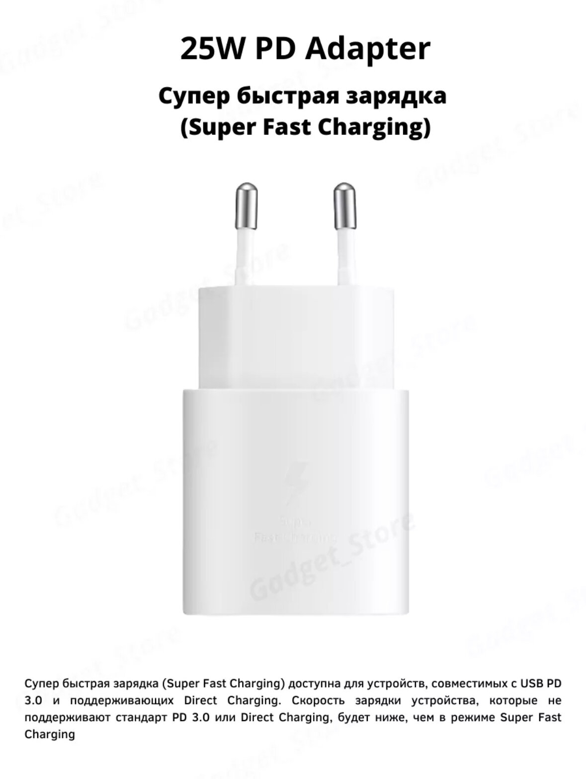 Сетевое зарядное устройство Samsung EP-TA800 25W, с кабелем, Type-C, быстрая зарядка информация:
