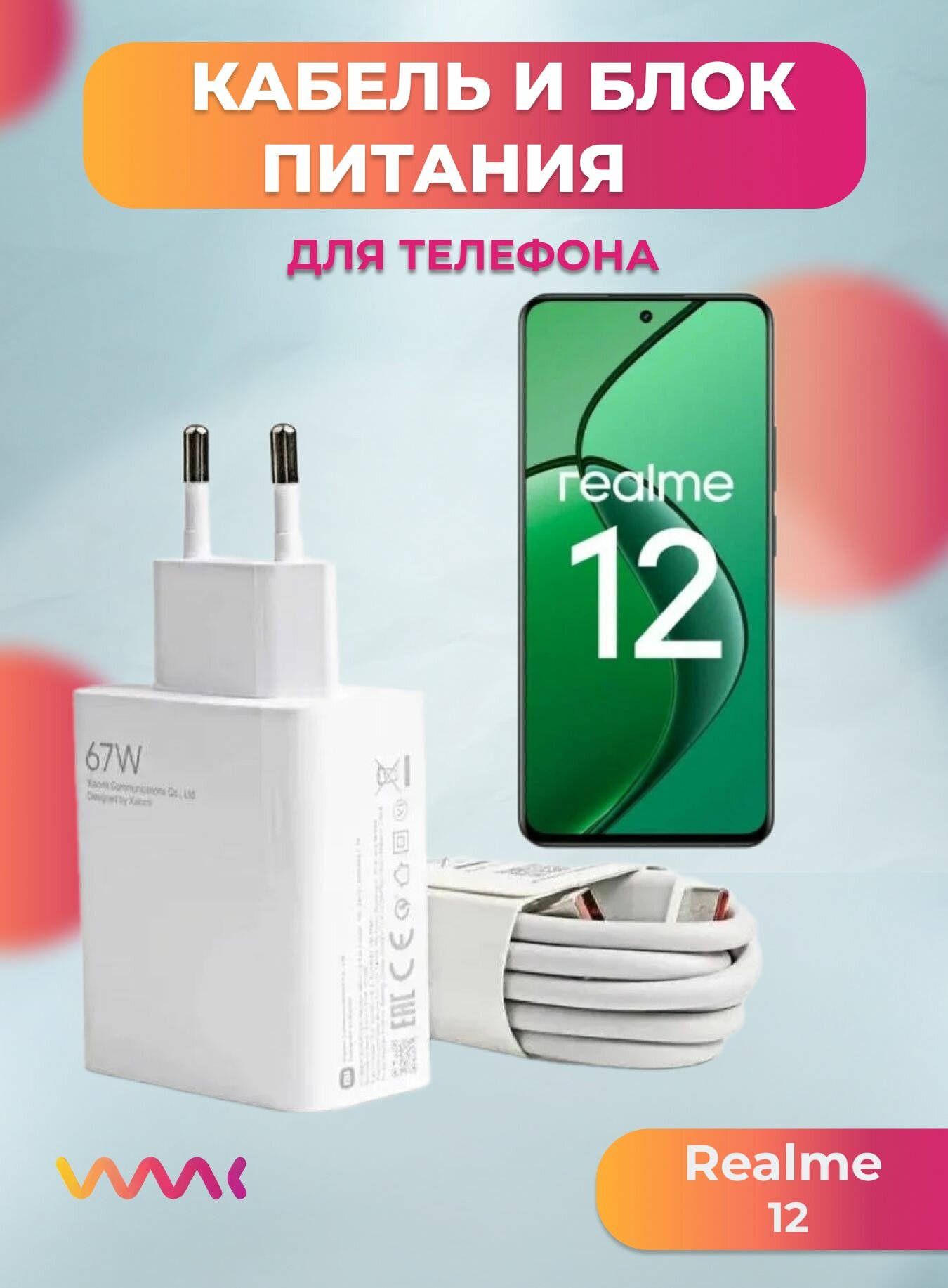 Комплект зарядного устройства (зарядка) для Realme 12 блок питания (адаптер) и кабель (провод) информация: