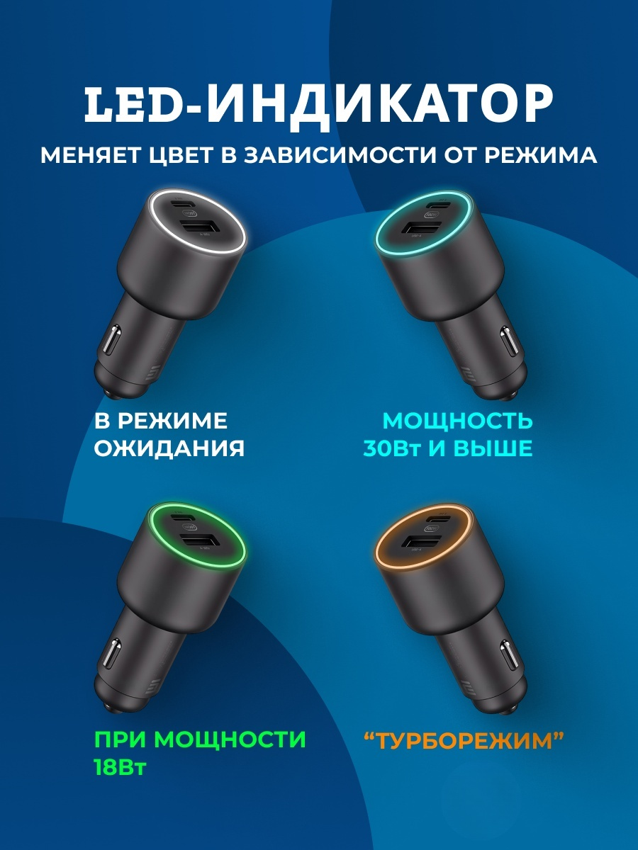 Автомобильное зарядное устройство Xiaomi 1A1C, 100Вт, 2 порта информация: