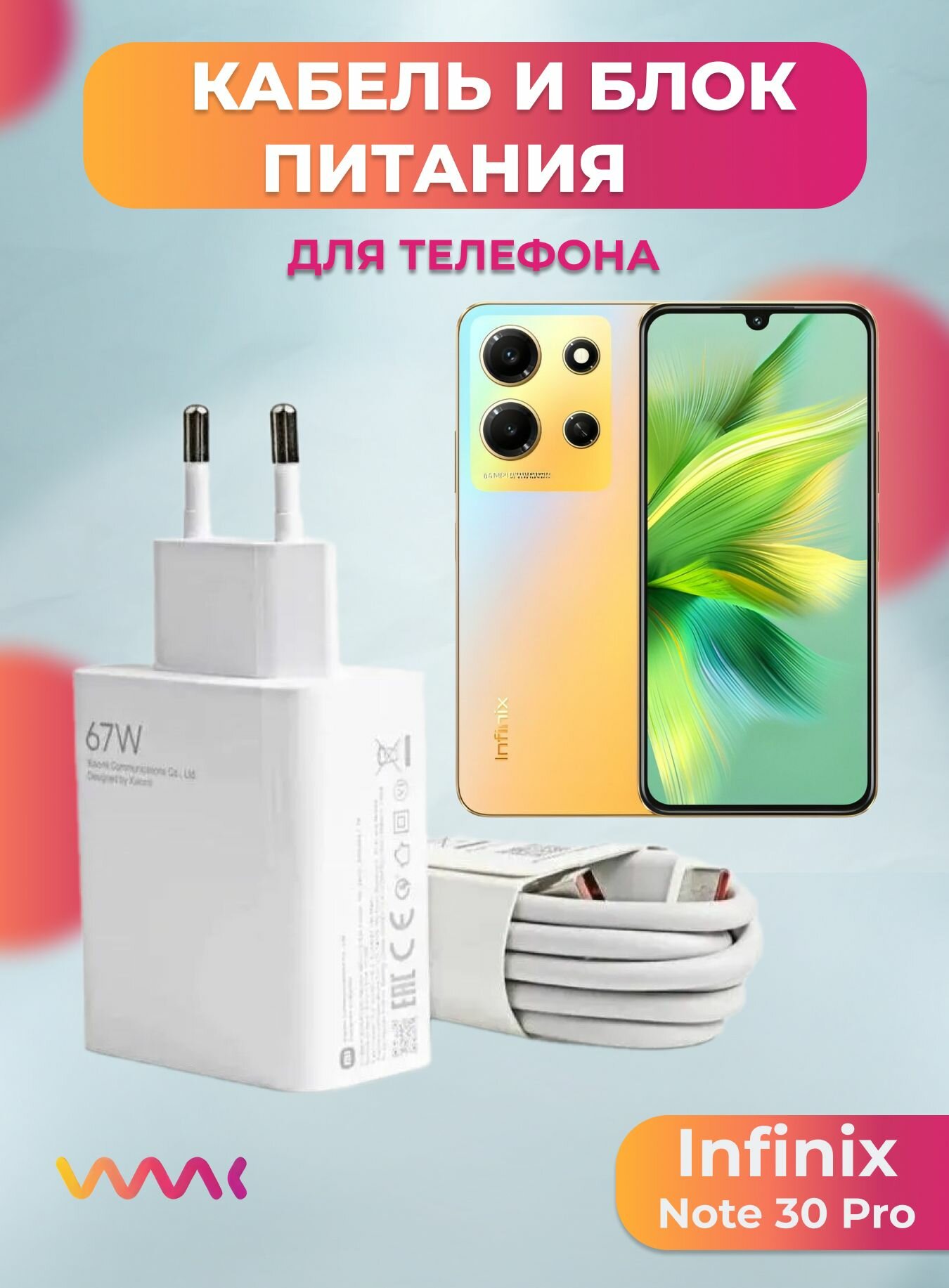 Комплект зарядного устройства (зарядка) для Infinix Note 30 Pro блок питания (адаптер) и кабель (провод) информация: