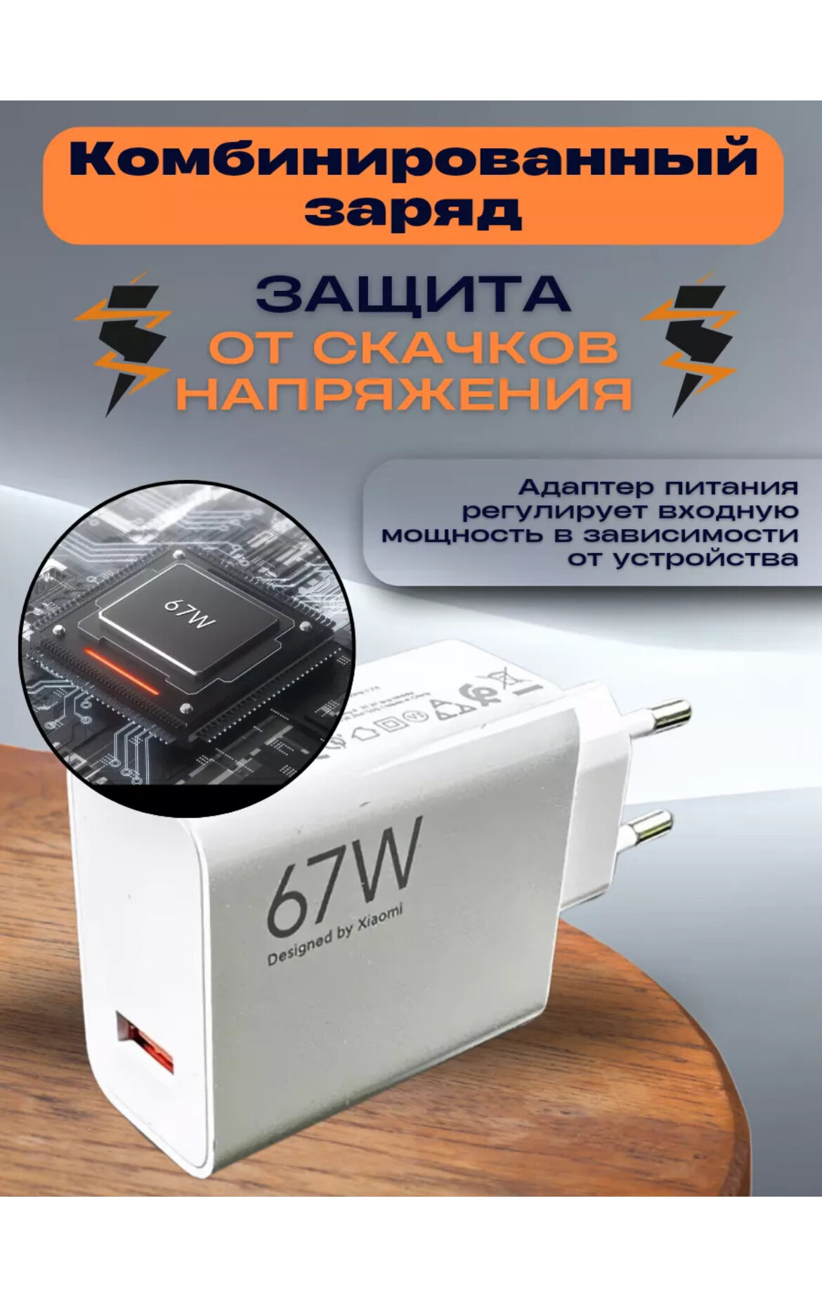Зарядное устройство для телефона, быстрая зарядка 67W, кабель USB type-C, белое информация: