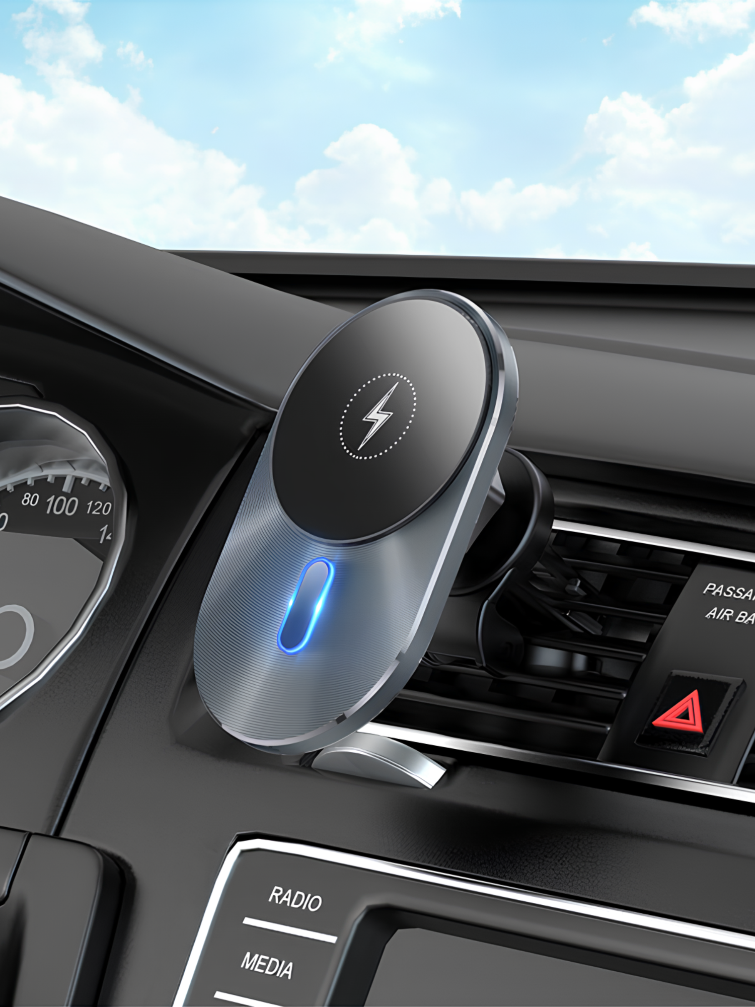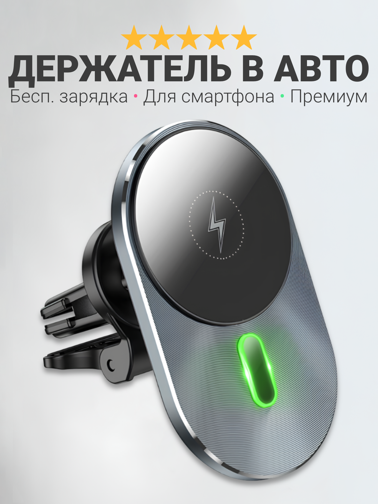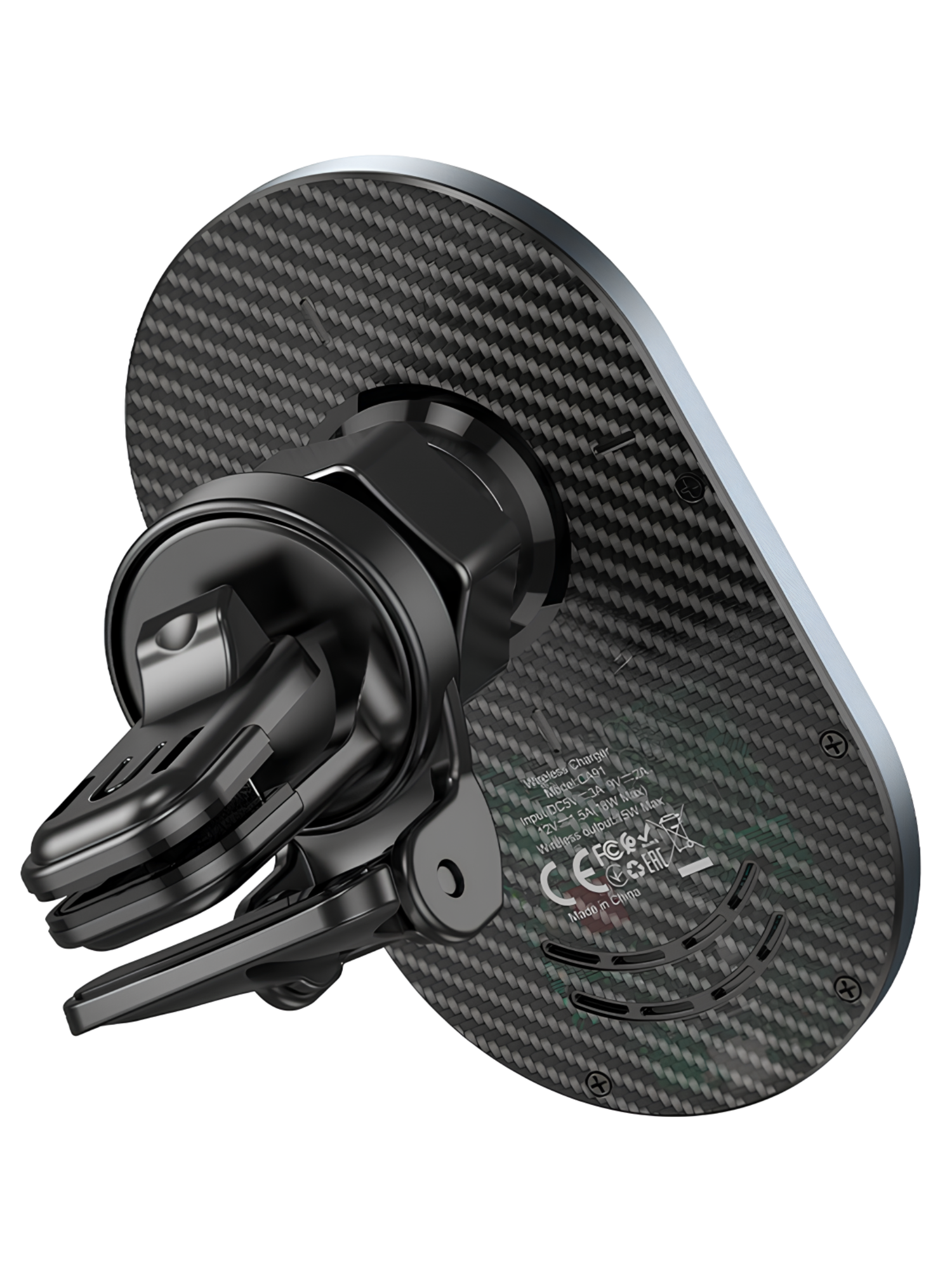Держатель для смартфона в машину HC CA91, с беспроводной зарядкой на прищепке магнитный, серебро информация: