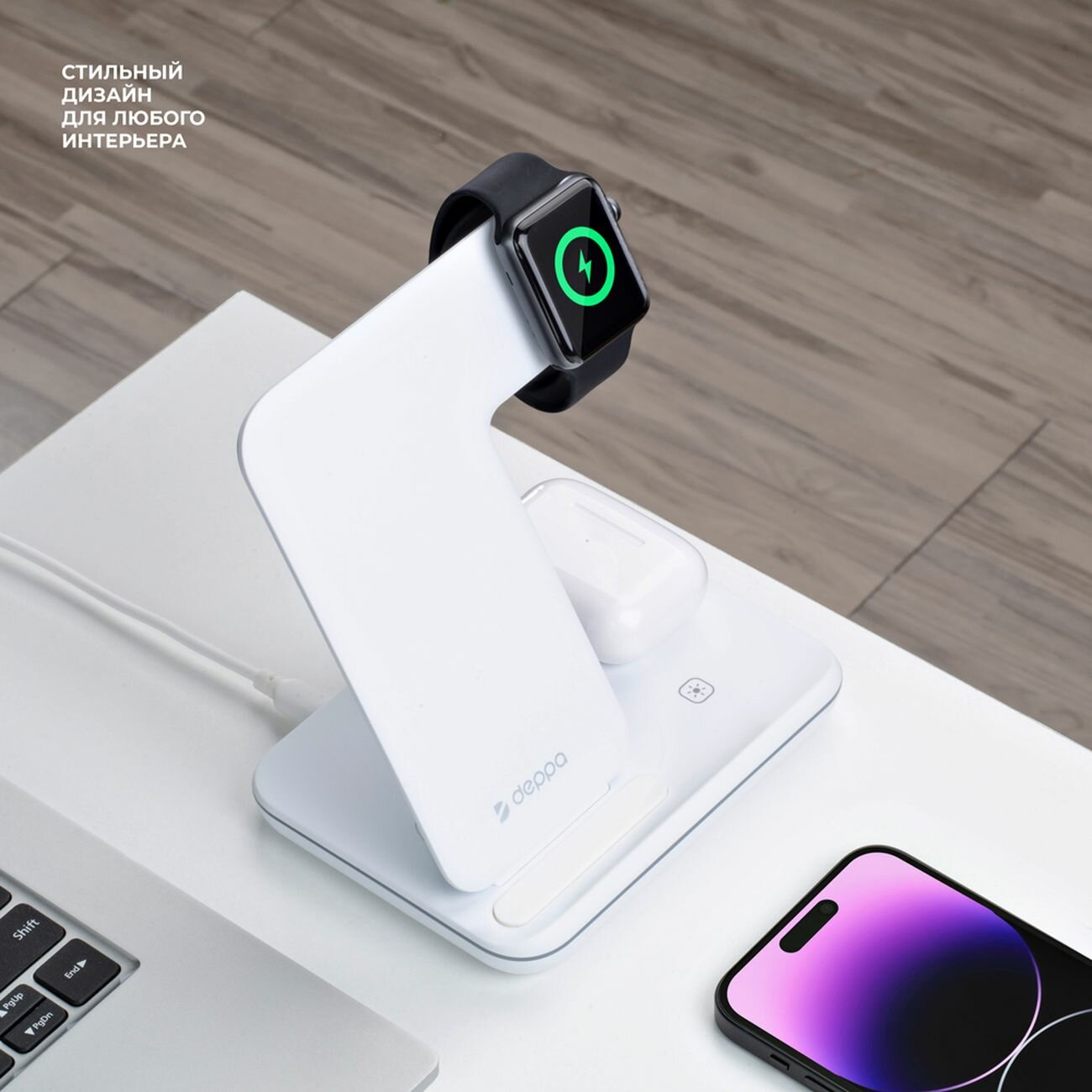 10 цен на Беспроводное зарядное устройство Deppa 3 в 1 Charging Stand Neo: 20 Вт белое (24017)