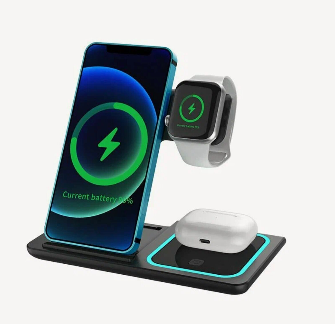 Отзывы на Беспроводная станция 3в1, зарядка для телефона, часов и наушников, черный