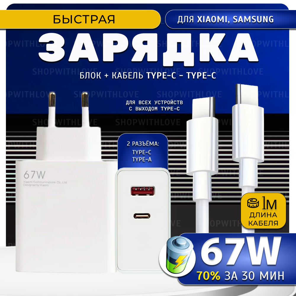 Зарядное устройство для Xiaomi 67 W, быстрая зарядка для android, USB-C, Адаптер питания Type C 67W, сетевой блок питания для телефона информация: