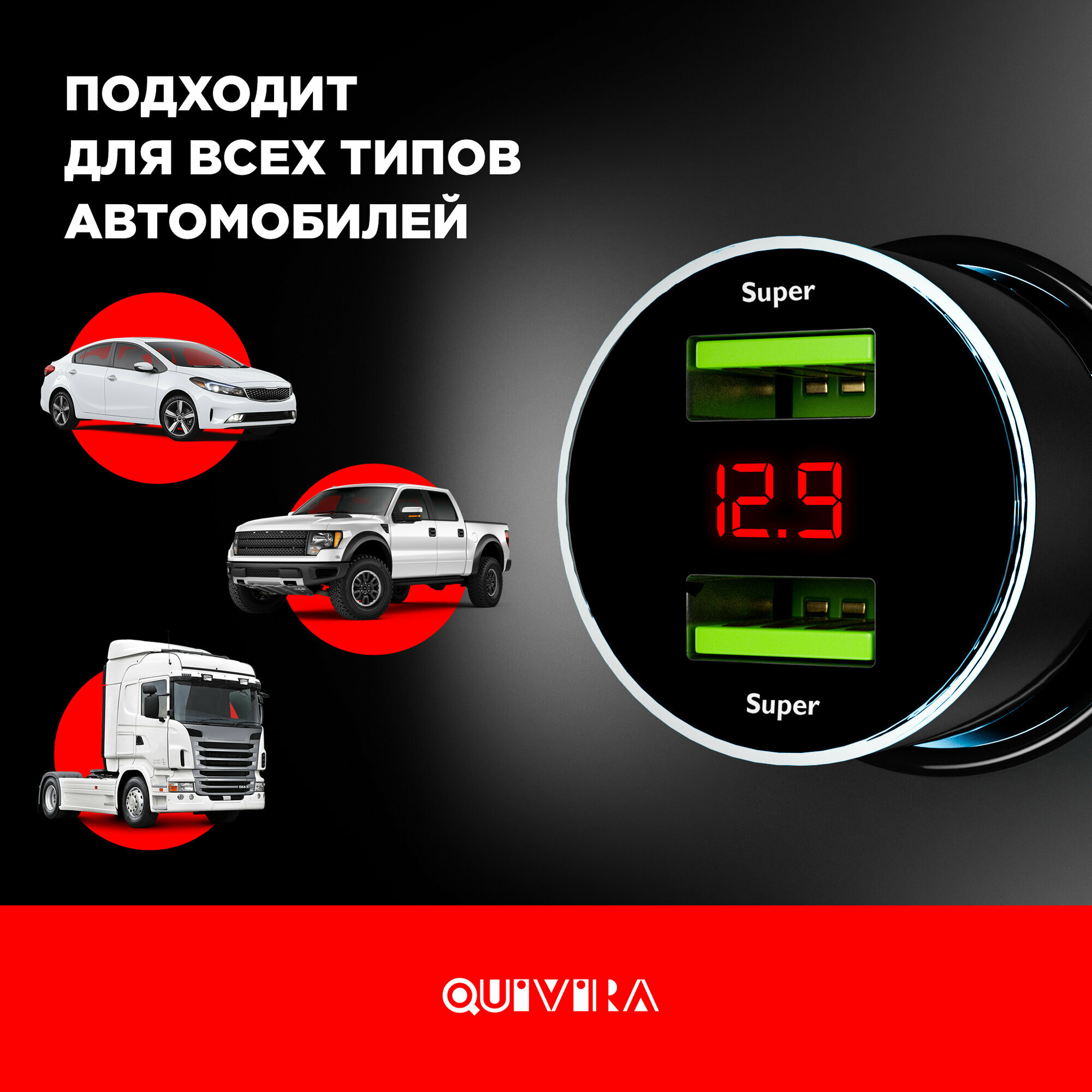 Авто ЗУ, быстрая зарядка в 2 USB с вольтметром информация: