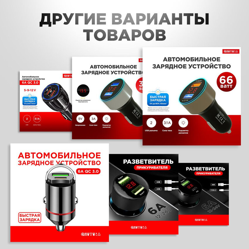 10 цен на Авто ЗУ, быстрая зарядка в 2 USB с вольтметром