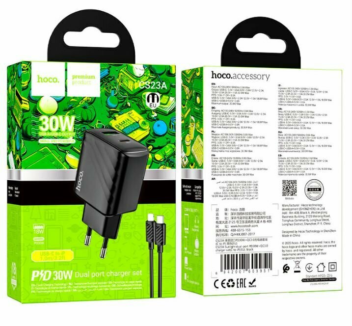 Отзывы на Сетевое зарядное устройство Hoco CS23A + кабель Type-C на Lightning, черный