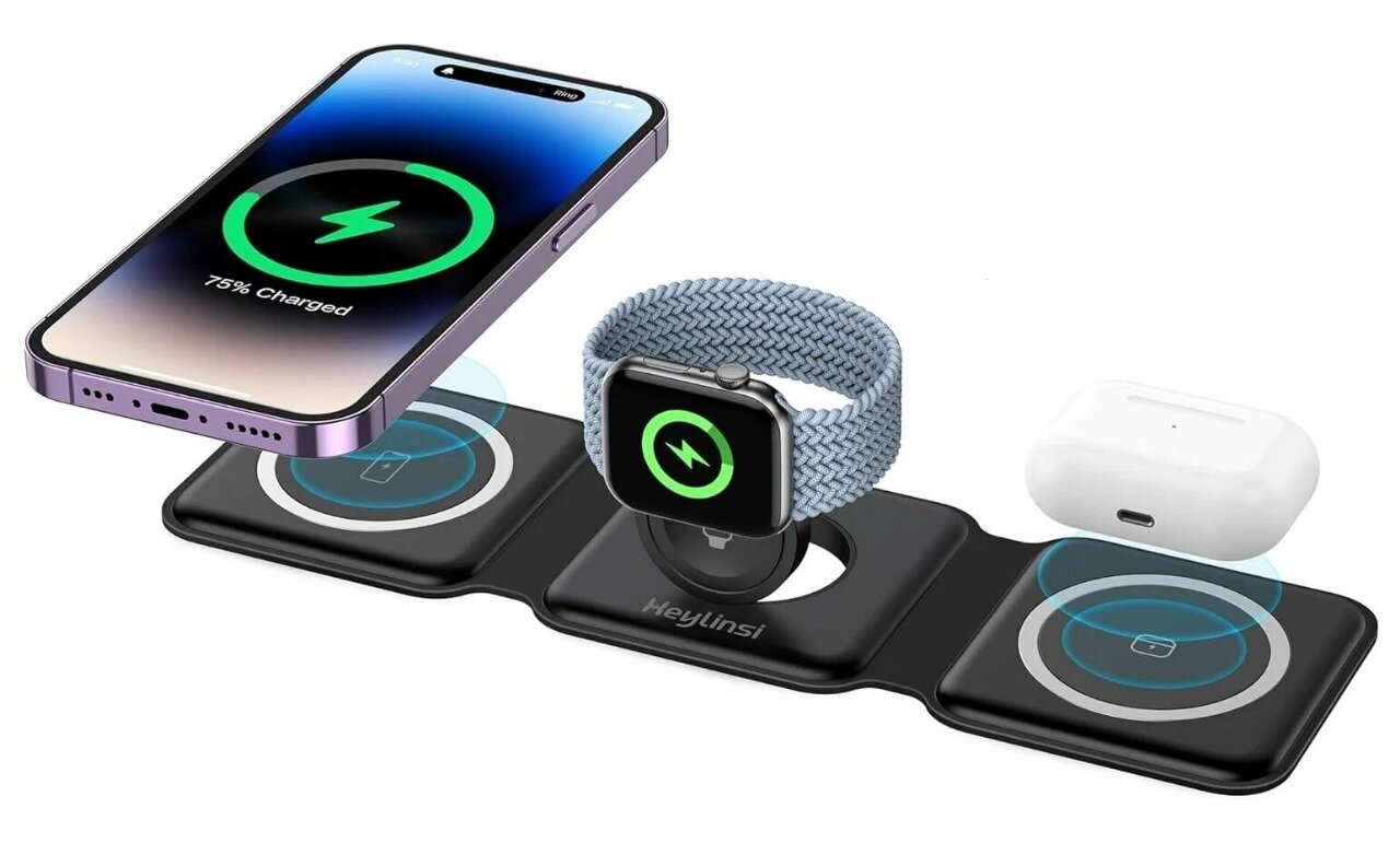 Отзывы на Беспроводная зарядная раскладушка MagSafe 15W для iPhone+iWatch+AirPods / Быстрая зарядка Qi / 3в1 / Black
