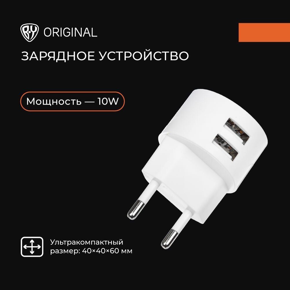 10 цен на Зарядное устройство Блок питания с 2xUSB для телефона, 2А, белый