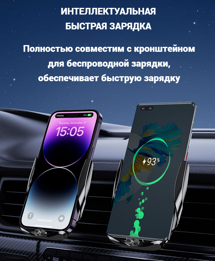 Автомобильное беспроводное зарядное устройство F4+ для мобильного телефона, черный 1 026 ₽