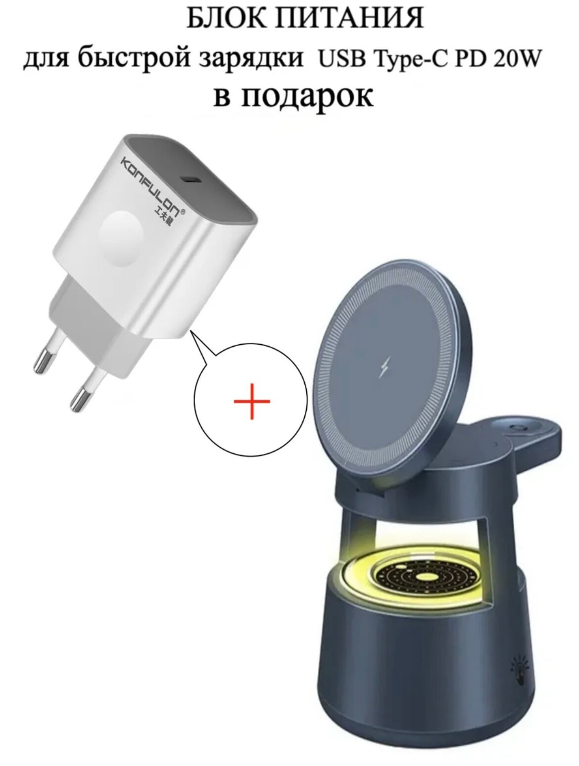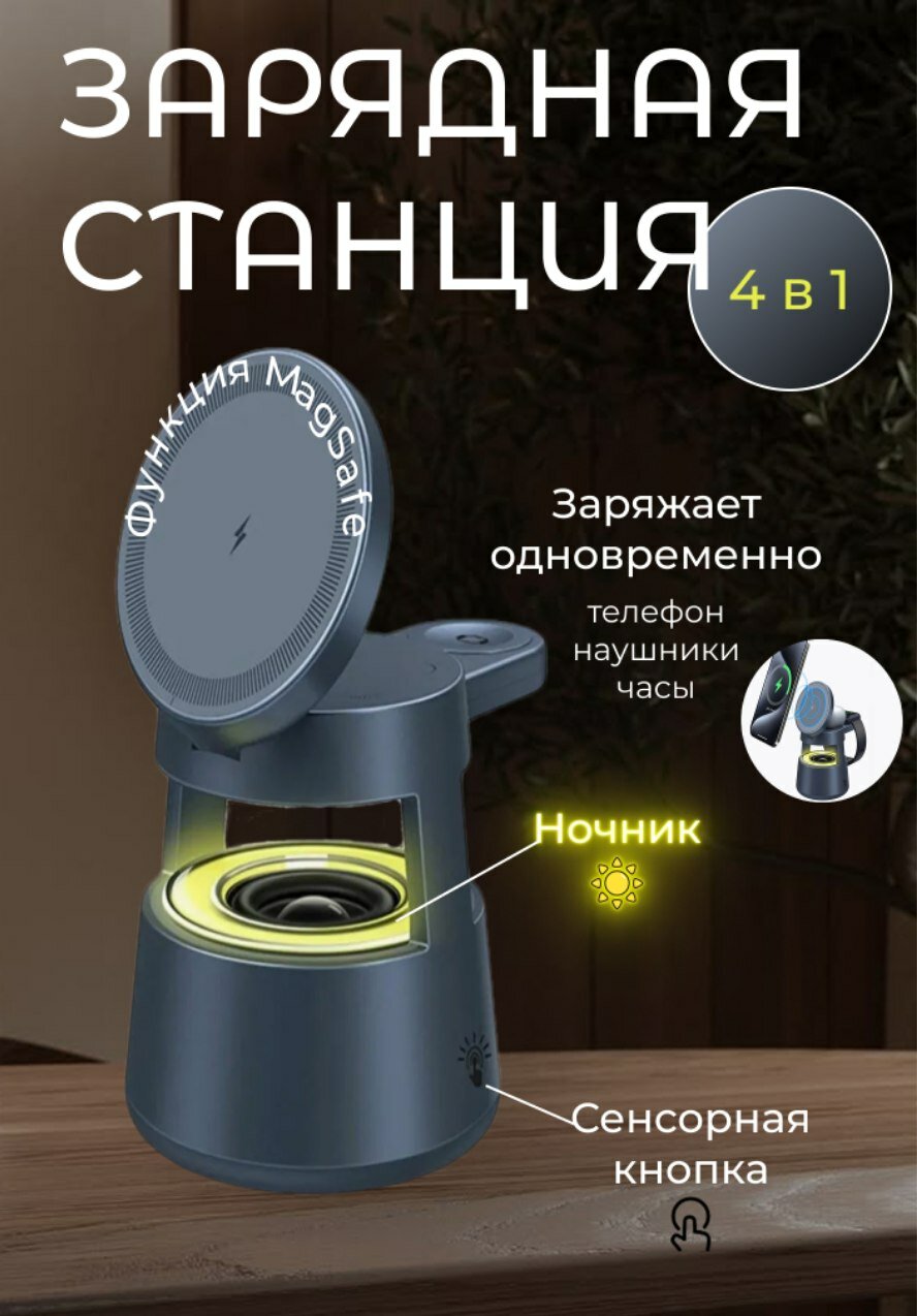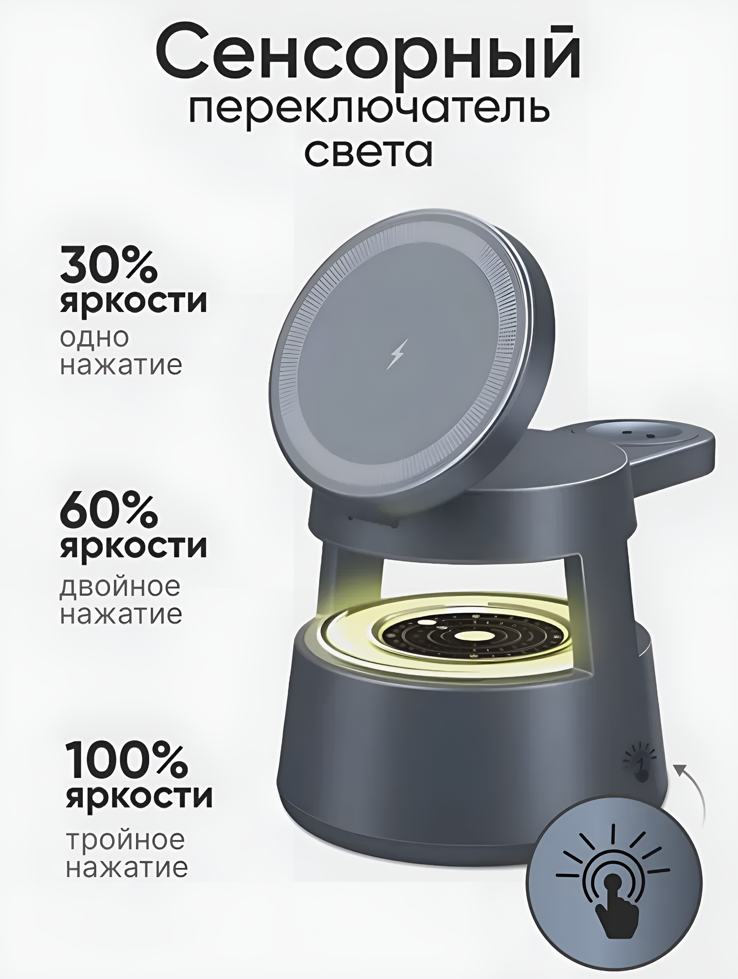 Беспроводная магнитная зарядка ночник 4 в 1 MagSafe 15W информация: