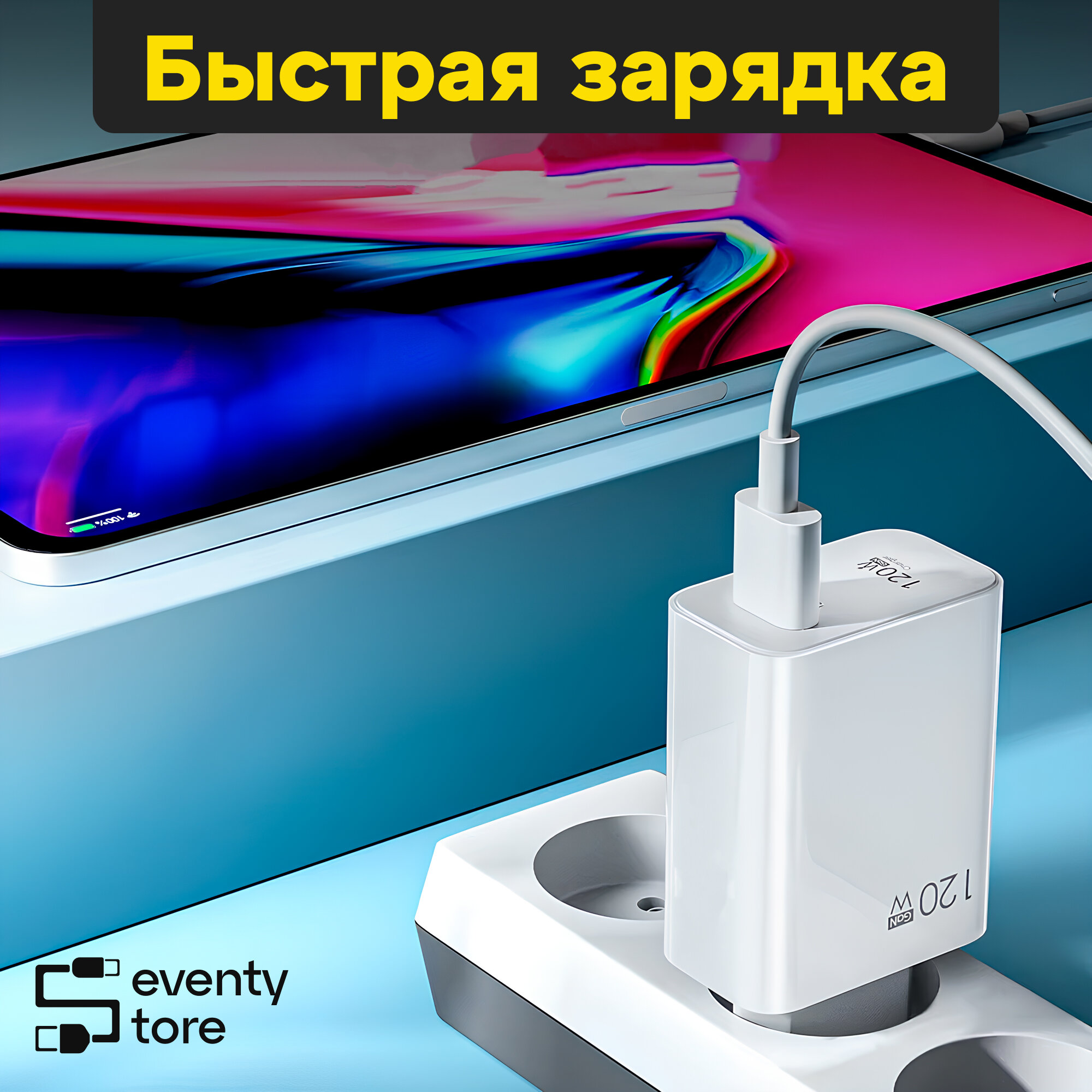 Комплект быстрой зарядки для Xiaomi/Huawei/Oppo/Realme блок 120W и кабель 6A Type-C информация: