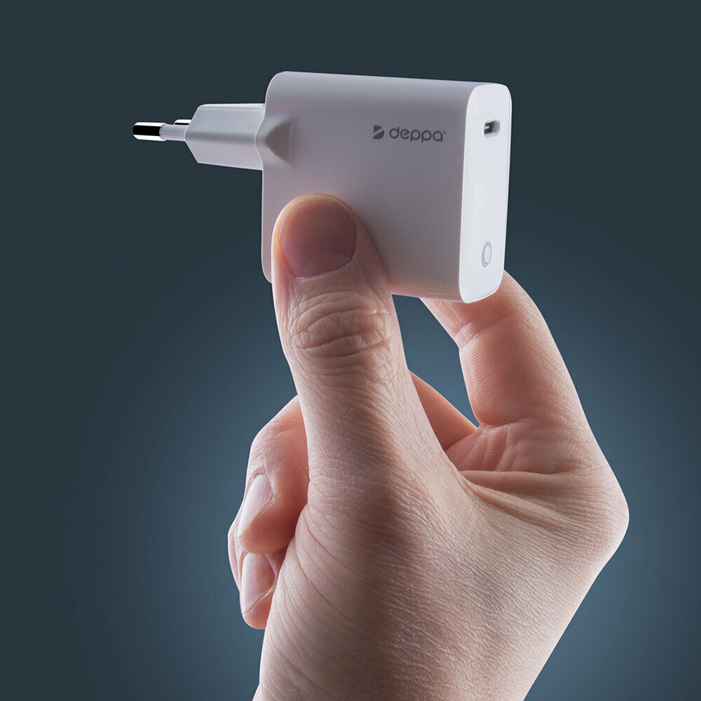 Зарядное устройство для телефона USB Type-C, Power Delivery, 20Вт, белый, Deppa 11424-OZ/ Без заводской упаковки информация: