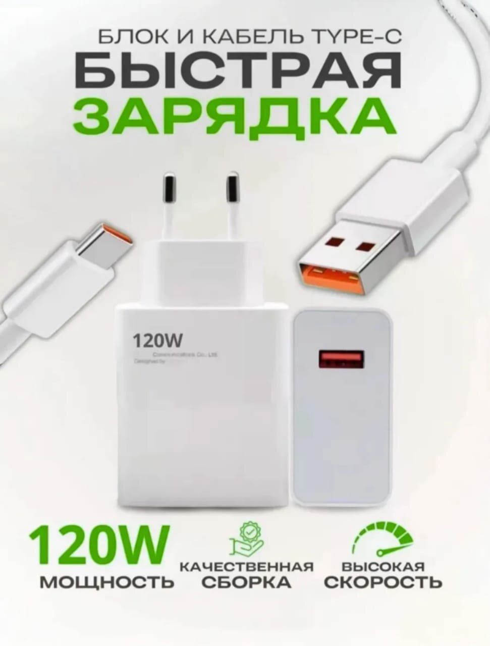 Зарядное устройство Блок Mi 120W + кабель USB-Type-C, Fast Charge для Xiaomi, Huawei, Samsung, Honor, информация: