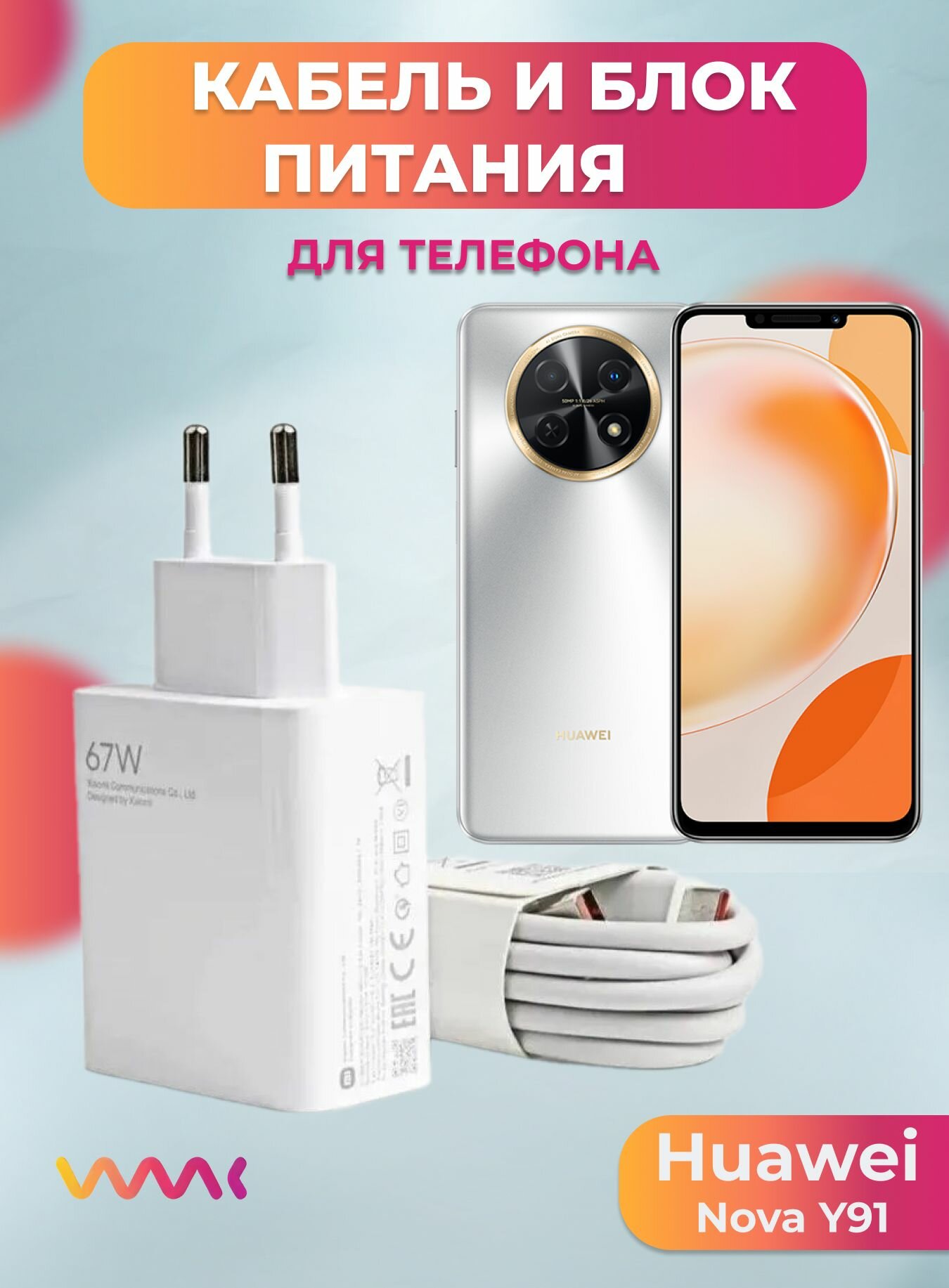 Комплект зарядного устройства (зарядка) для Huawei nova Y91 блок питания (адаптер) и кабель (провод) информация:
