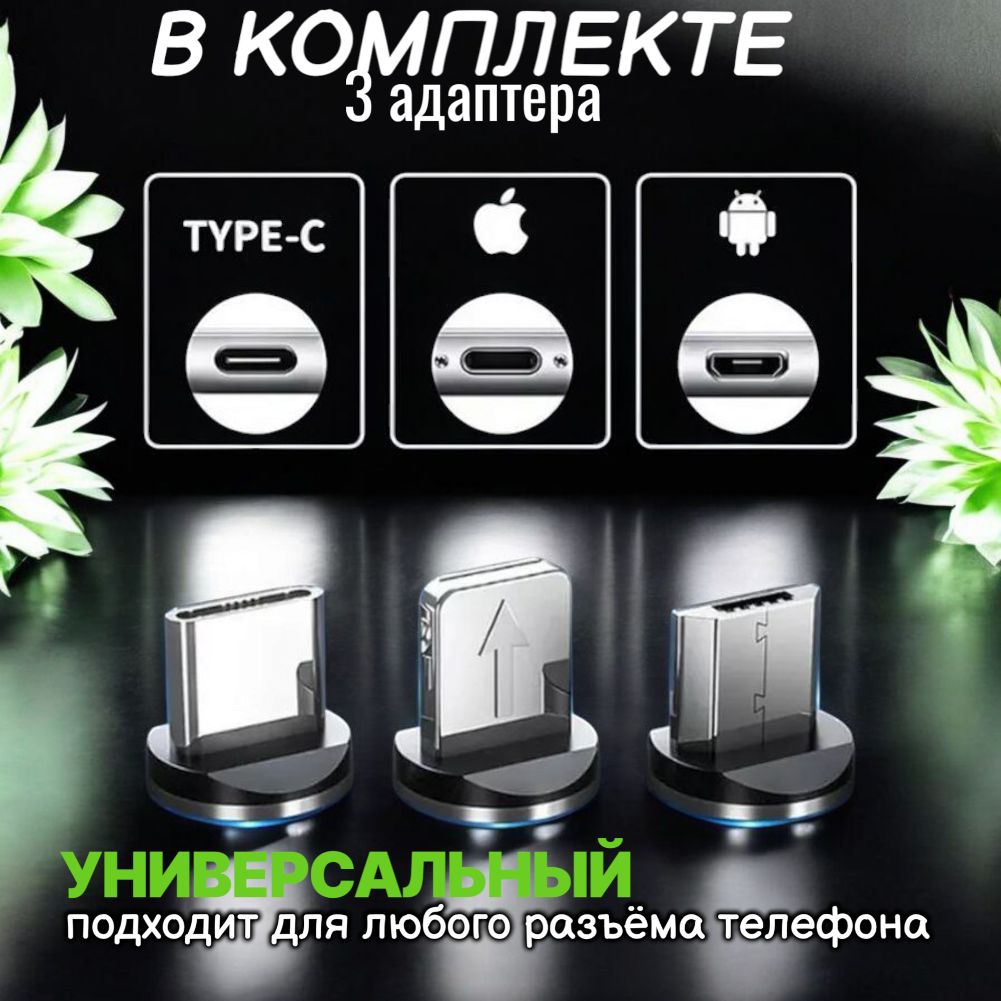 Отзывы на Магнитный кабель, для мобильных устройств, с подсветкой, съемный, 3 разъема, зеленый