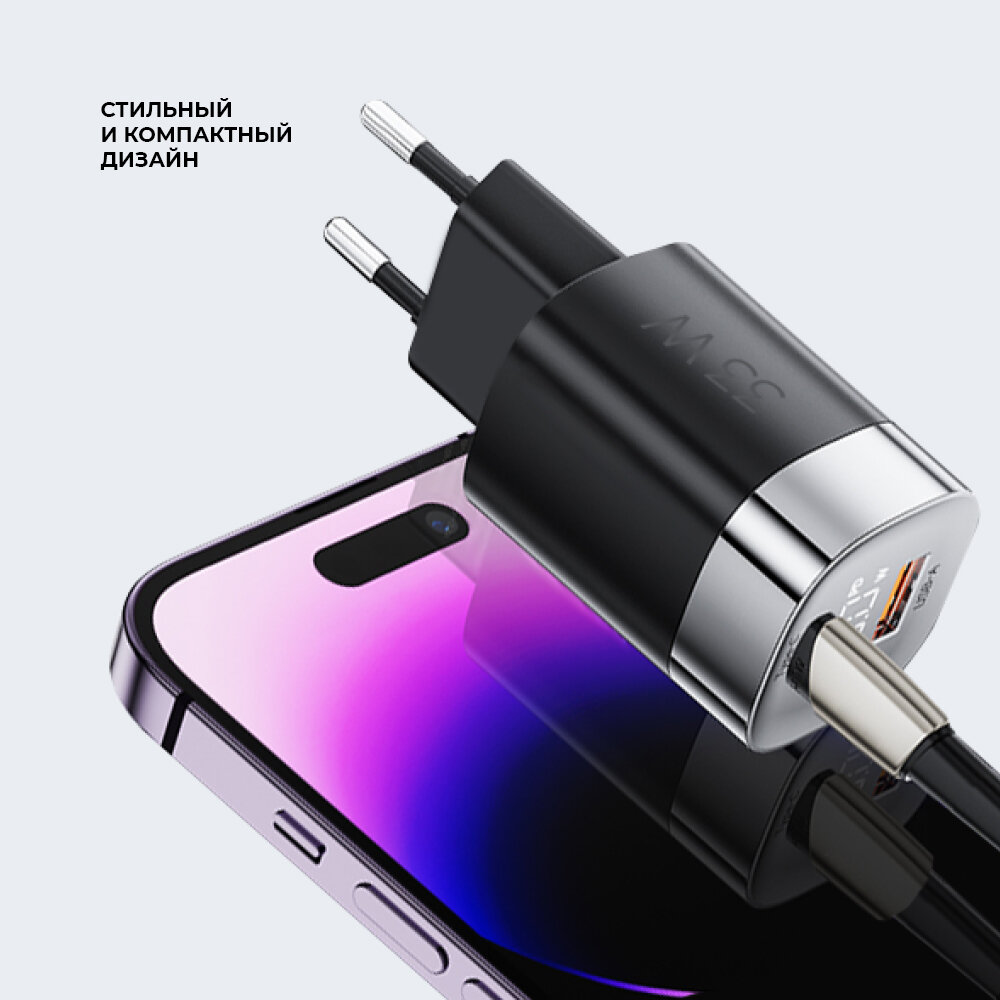 Отзывы на Сетевое зарядное устройство Wall Charger USB-C + USB A, PD 3.0, QC 3.0, 33W, дисплей, черный, Deppa, Deppa 11439